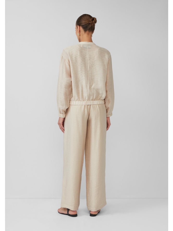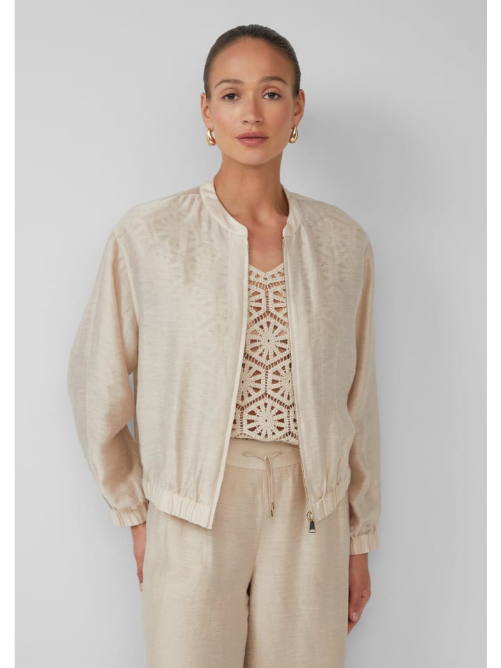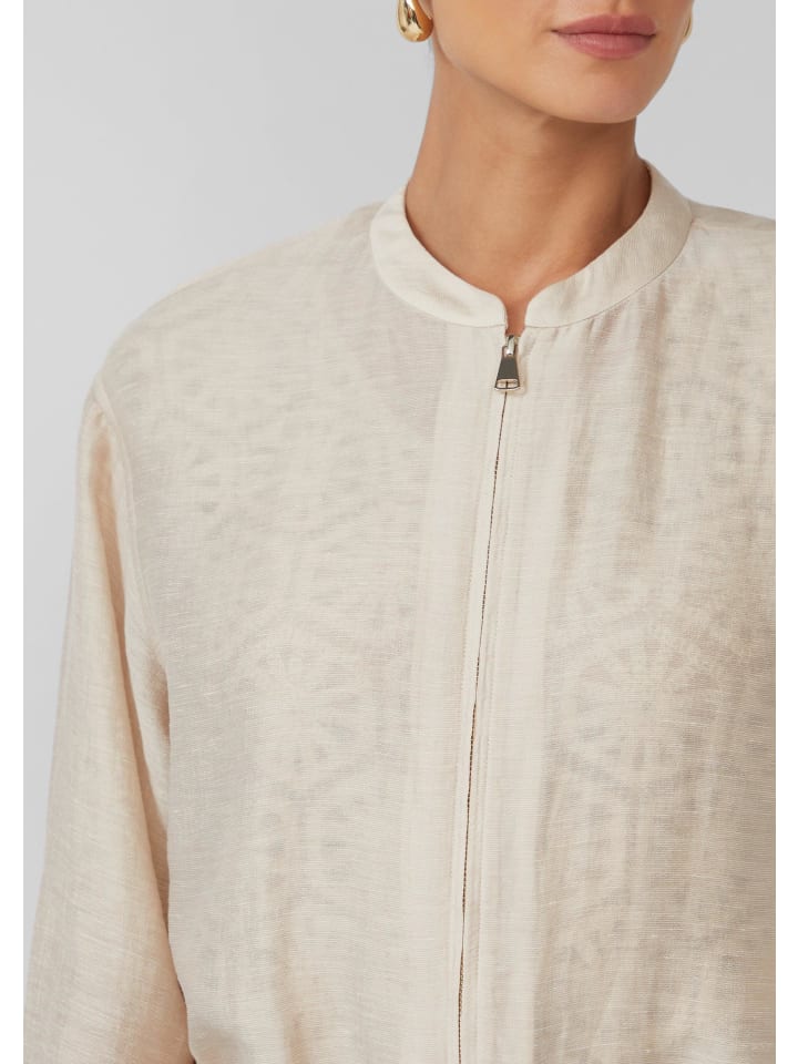 Непринужденная роскошь на любой случай: этот блузон свободного кроя из смесовой льняной ткани сочетает в себе комфорт и стиль. Благодаря воротнику-стойке и металлической молнии вы будете выглядеть эффектно как в офисе, так и на вечеринке. Прозрачная ткань и эластичный подол создают непринужденный, но изысканный образ. Ваш универсальный спутник для создания уверенного стиля.