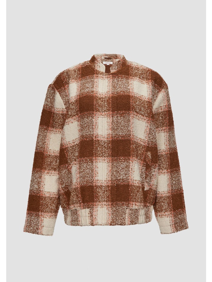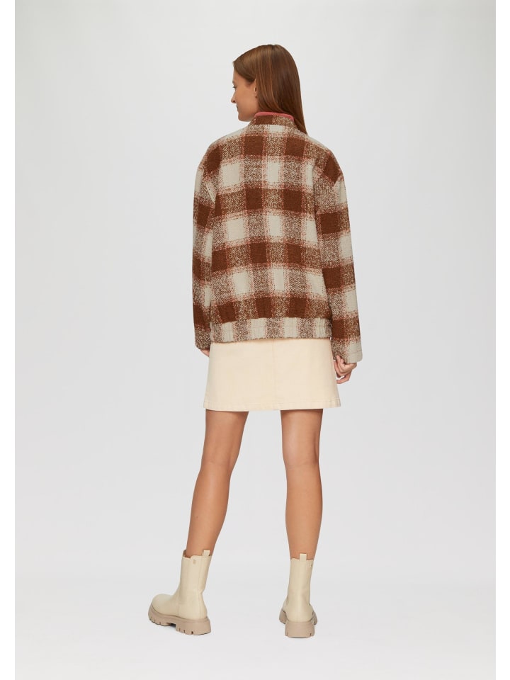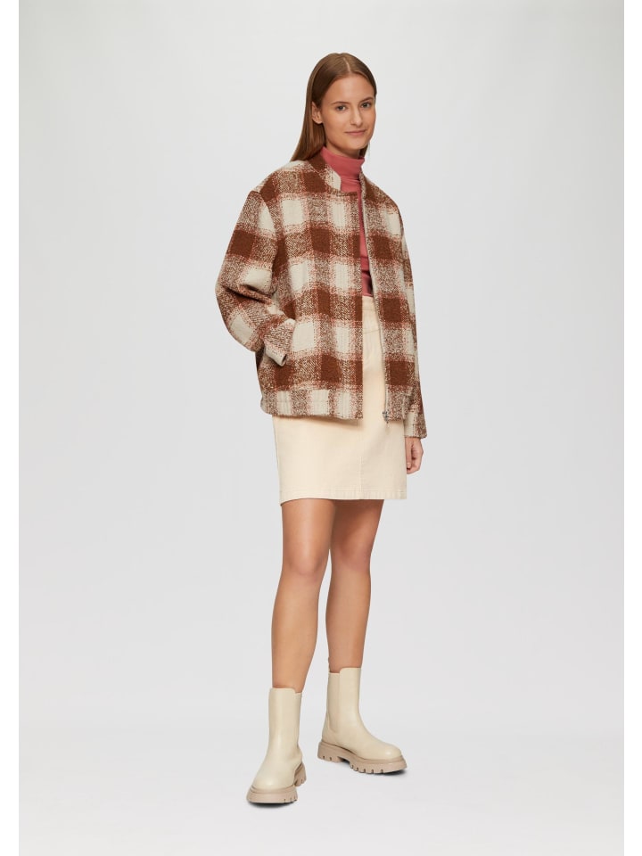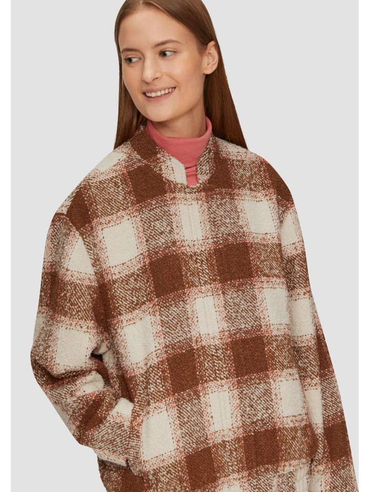 Откройте для себя нашу универсальную куртку-бомбер вашей мечты! Клетчатый узор из букле придаст вам неповторимый вид. Эта куртка с воротником-стойкой и потайной молнией идеально подходит для прохладных осенних дней. Свободный крой и практичные боковые карманы обеспечат комфорт. Сочетайте ее с джинсами или элегантно с платьем - ваш новый фаворит на любой случай!