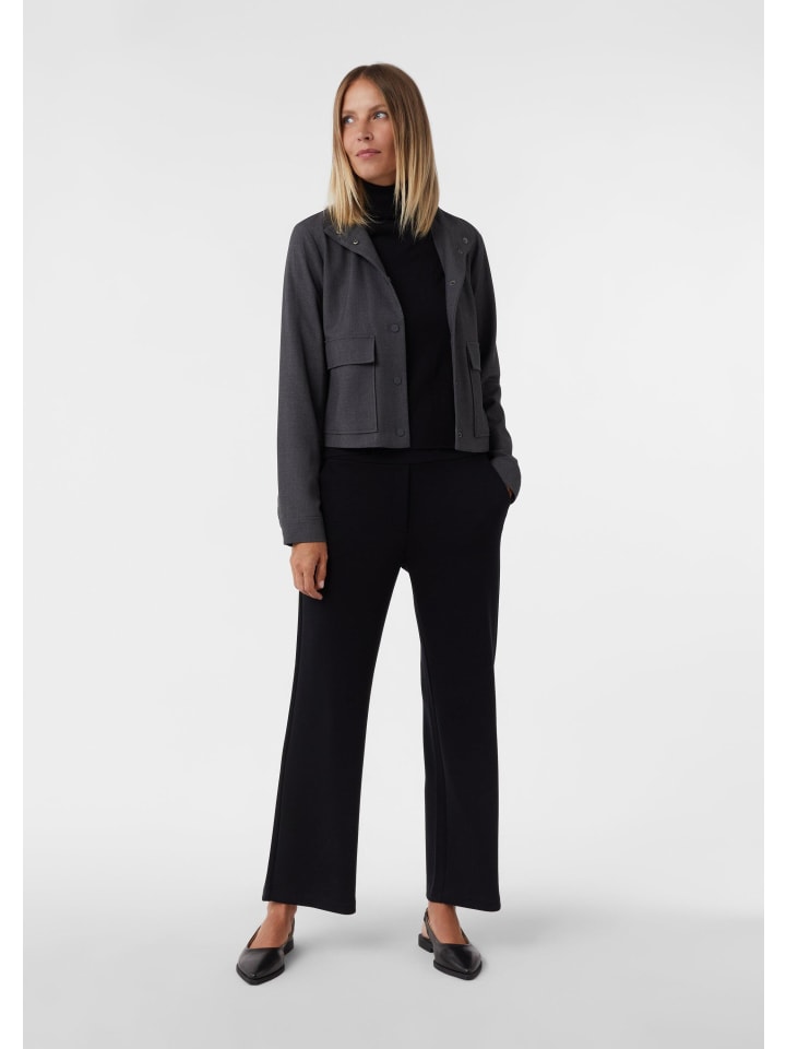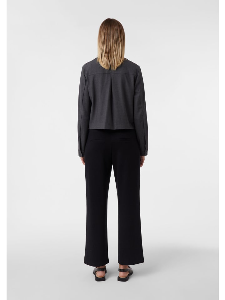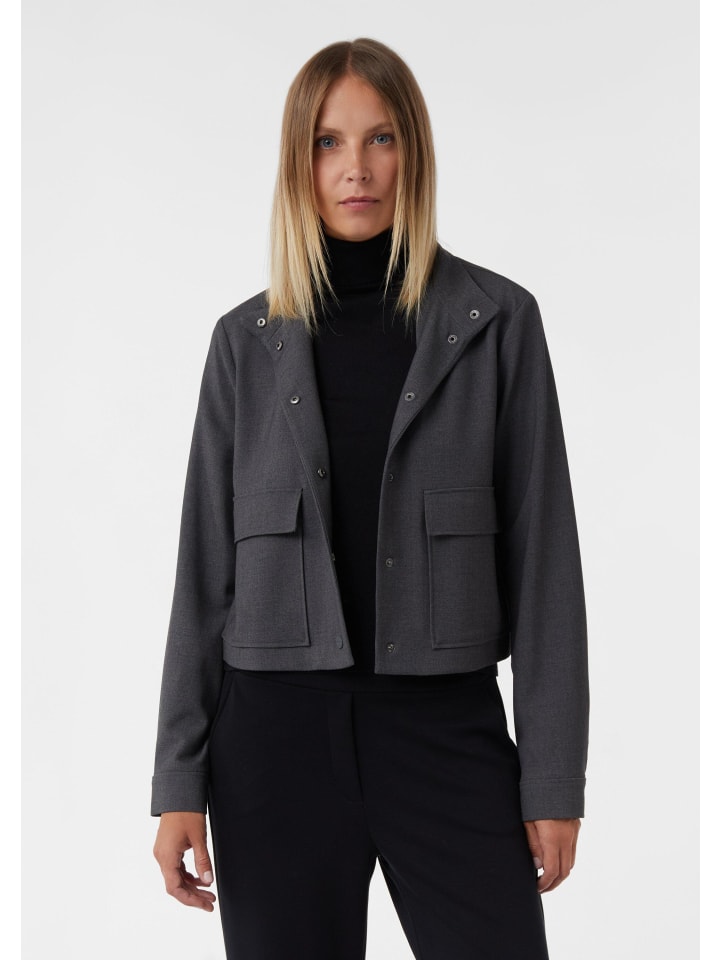 Эта короткая куртка сочетает в себе деловую элегантность и непринужденный шик. Короткий свободный крой и эффектный воротник-стойка добавляют модные акценты, а практичные накладные карманы гарантируют функциональность. Ткань без подкладки и стильные манжеты делают куртку универсальным аксессуаром. Благодаря застежке на кнопки, эта высококачественная модель легко сочетается с различными нарядами.