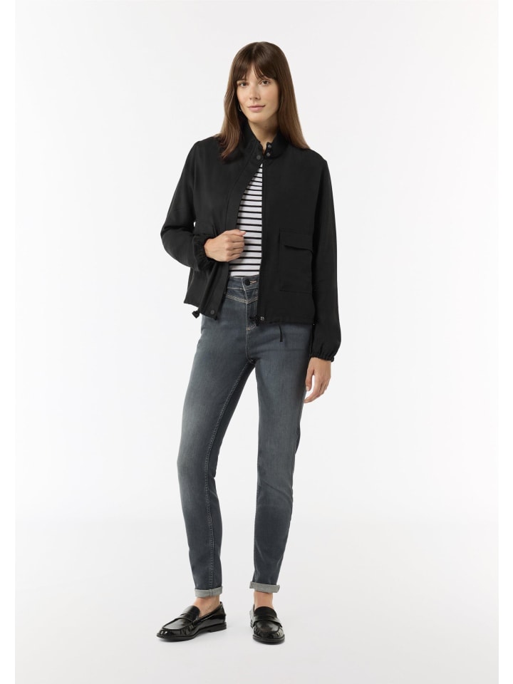 Непринужденная элегантность для дома: эта ветровка из высококачественной модальной смеси выгодно подчеркивает фигуру благодаря свободному крою. Воротник-стойка, молния и кулиска на шнурке придают изделию структуру. Карманы с клапанами и длинные рукава дополняют непринужденный образ для дома.