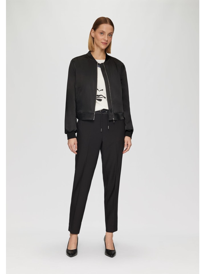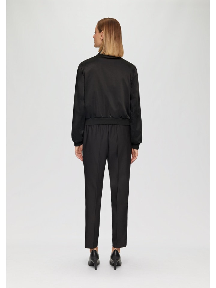 Стильный повседневный образ! Этот атласный блузон сочетает в себе комфорт и элегантность. Благодаря ребристым манжетам, застежке-молнии и практичным боковым карманам он станет вашим универсальным спутником на все случаи жизни. Как бы вы его стилизовали? Классический крой и воротник-стойка подчеркнут любую фигуру. Незаменимая вещь для элегантных офисных нарядов или праздничных образов.
