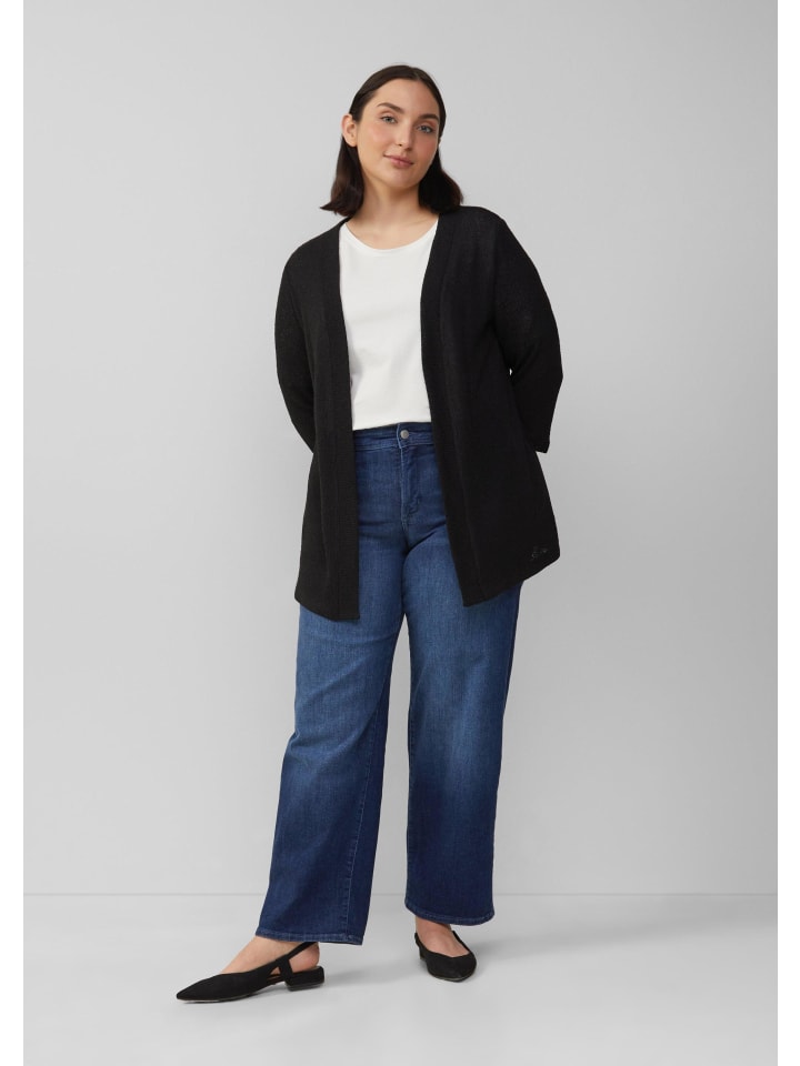 Этот воздушный и легкий кардиган из мягкой пряжи букле обеспечит вам стильный образ на весь день. V-образный вырез и рукава три четверти придают этому однотонному базовому кардигану прямого кроя непринужденный и повседневный вид.