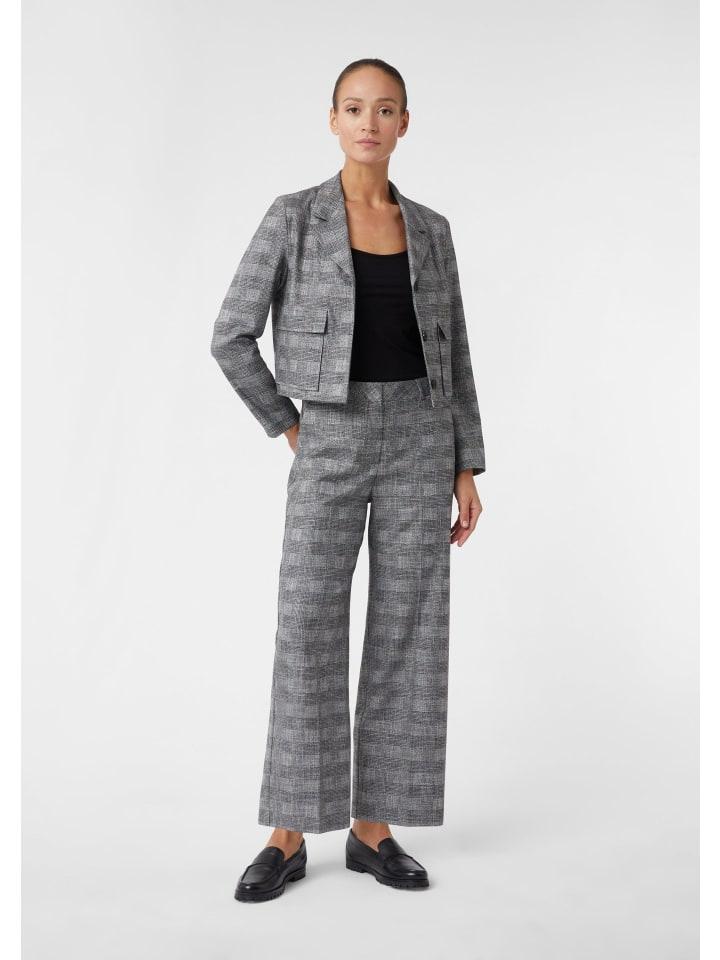 Модная изысканность на каждый день: эта короткая домашняя куртка в стиле блейзера идеально сочетает в себе повседневный и деловой образы. Накладные карманы и застежка на пуговицы придают ей струящуюся элегантность. Остроконечные лацканы и свободный крой добавят женственности вашему образу. Сочетайте эту высококачественную вещь для стильного образа в офисе или во время непринужденной прогулки по городу.