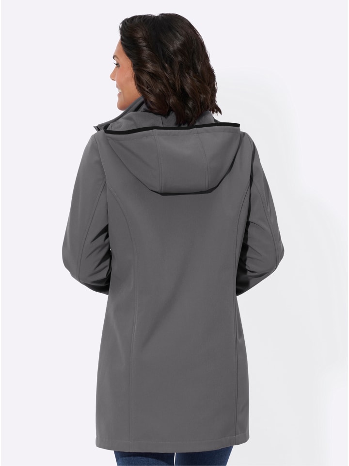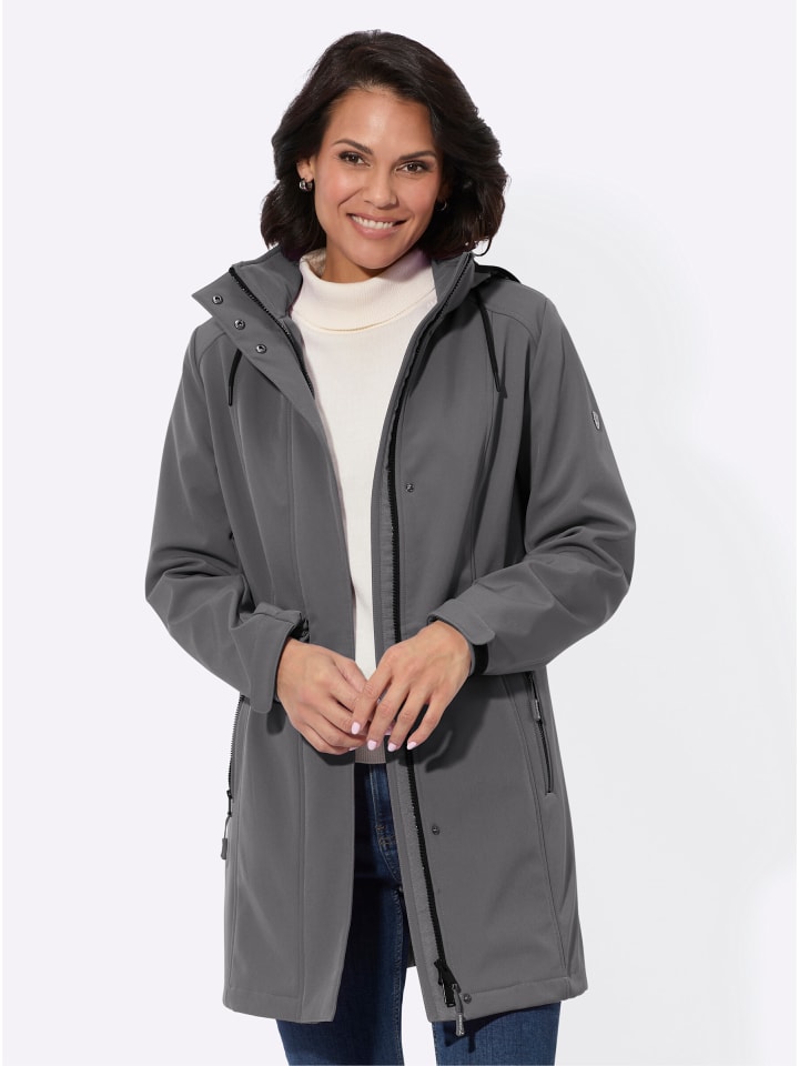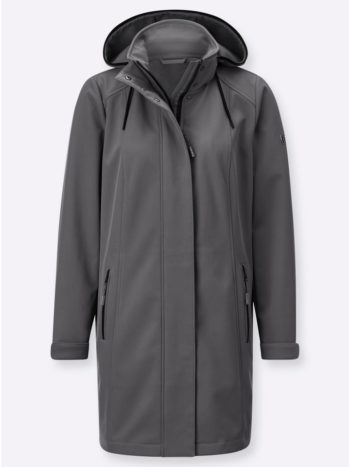 Идеально подходит для межсезонья! Длинная куртка из ветро- и водоотталкивающего материала softshell с уютной флисовой подкладкой. Воротник-стойка и съемный капюшон с регулируемой шириной. Практичная двусторонняя молния скрыта под планкой на кнопках. Защитные эластичные манжеты с хлястиками и регулируемыми застежками на липучках. Два передних кармана на молнии. Приталенные швы спереди и сзади.