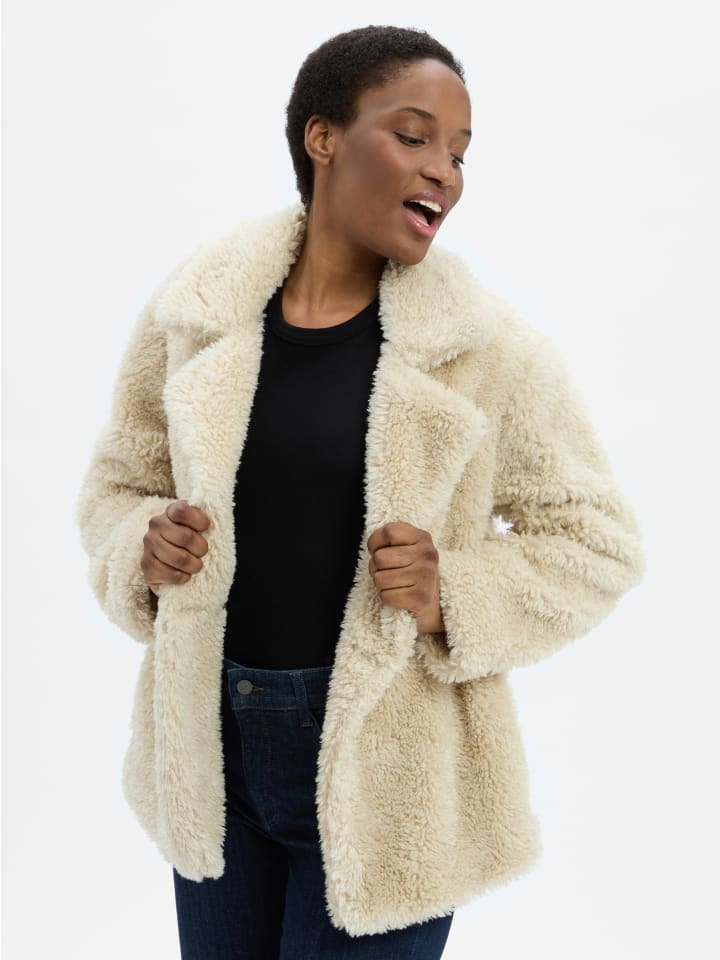 Пушистая куртка-тедди от s.Oliver, идеально подходящая для переходной погоды, обеспечивает мягкое тепло, свободный крой и легкую универсальность.