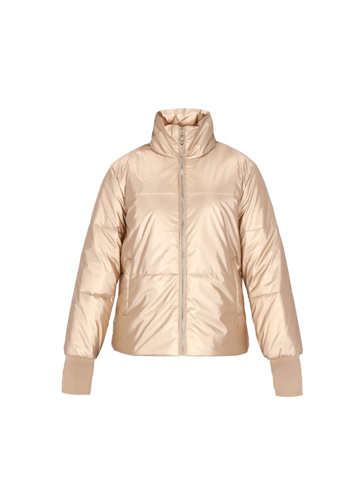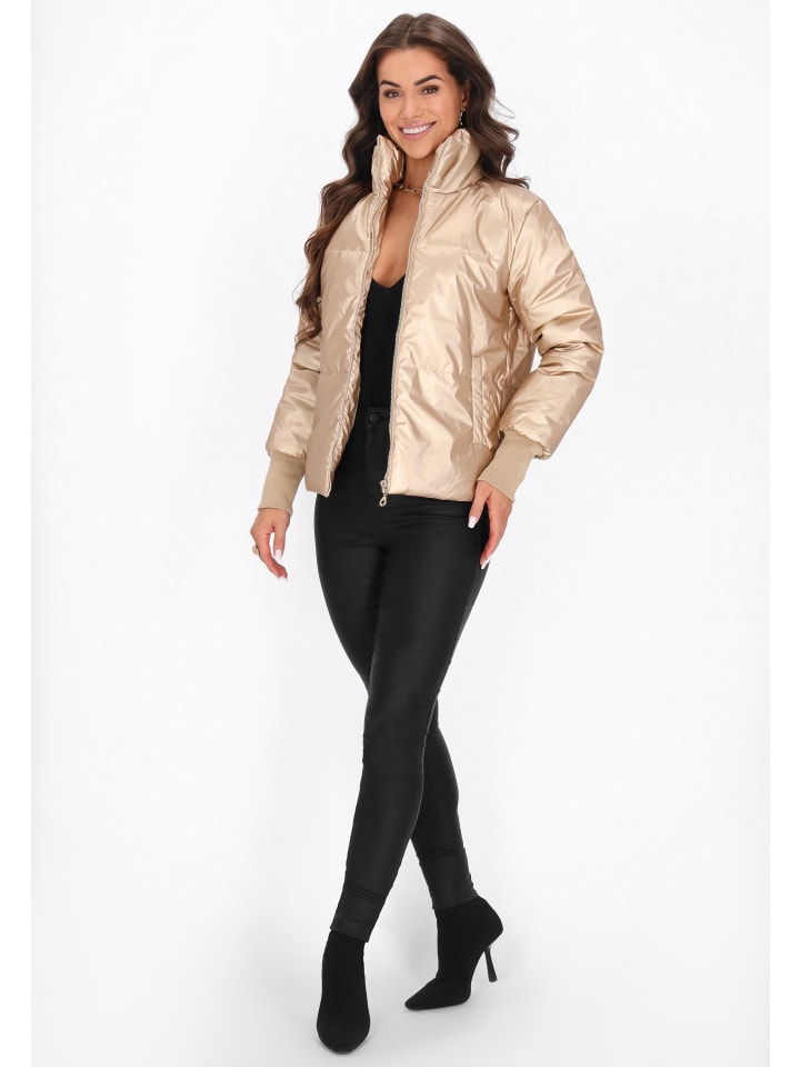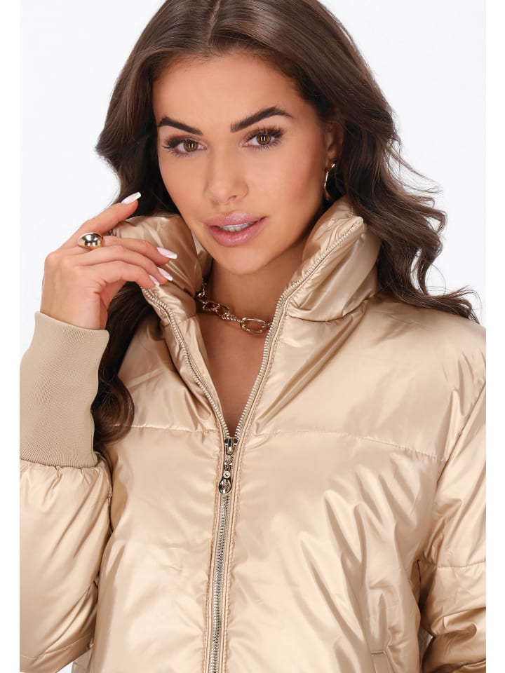 - Куртка прямого кроя с воротником-стойкой и длинными рукавами