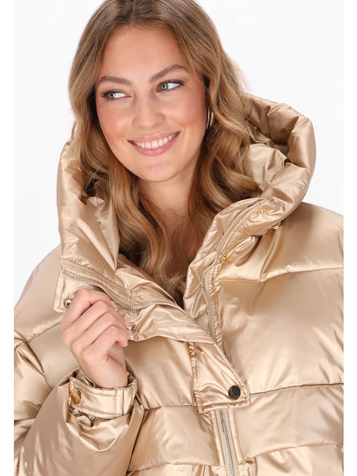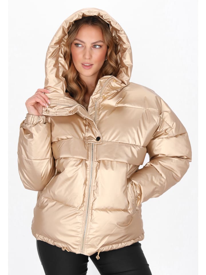 Эта стеганая куртка сочетает в себе комфорт и повседневный стиль. Прямой крой, капюшон, воротник-стойка и длинные рукава с эластичными манжетами застегиваются на молнию и кнопки, а пояс регулируется шнурком. Удобные карманы для мелочей. Благодаря однотонному крою она идеально подходит для повседневной носки в качестве удобной и стильной верхней одежды.