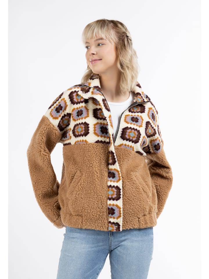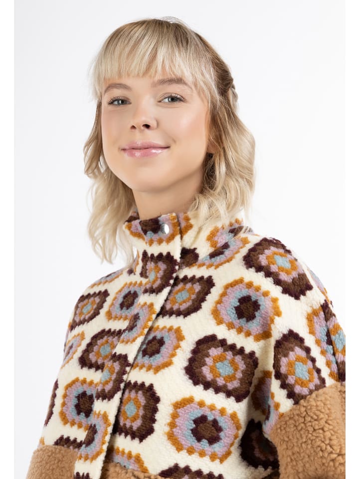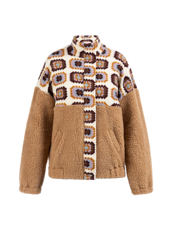 Флисовая куртка IZIA с ее неповторимым ретро-шармом обязательно вас впечатлит. Оригинальный рисунок спереди и сзади задает тон, а нижняя часть и рукава не менее привлекательны. Эта куртка-блузон, изготовленная в Италии, с боковыми карманами и эластичными манжетами идеально подходит для переходной погоды.