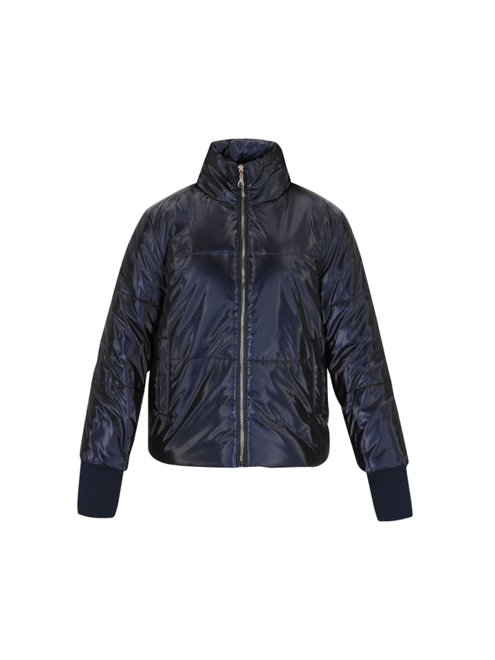 - Куртка прямого кроя с воротником-стойкой и длинными рукавами
