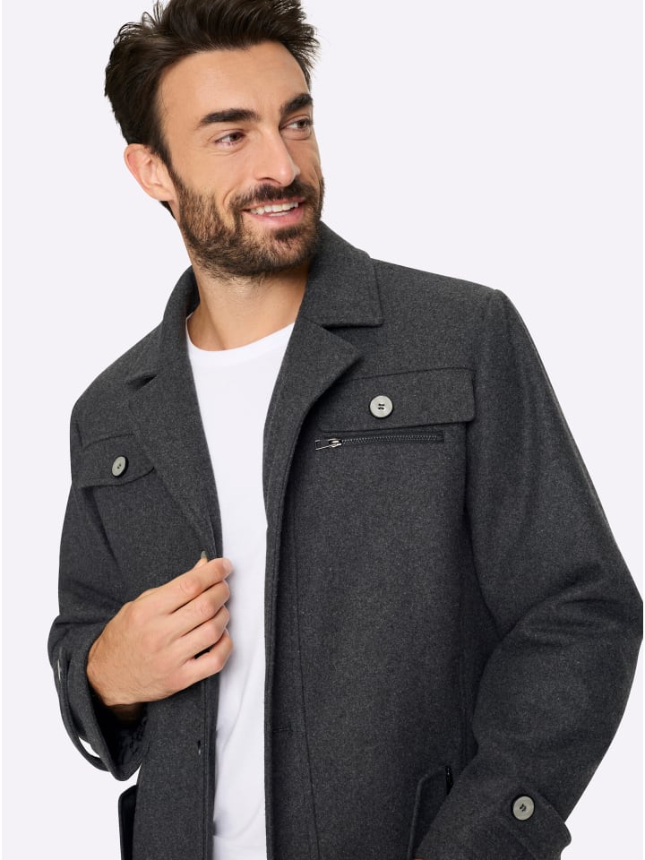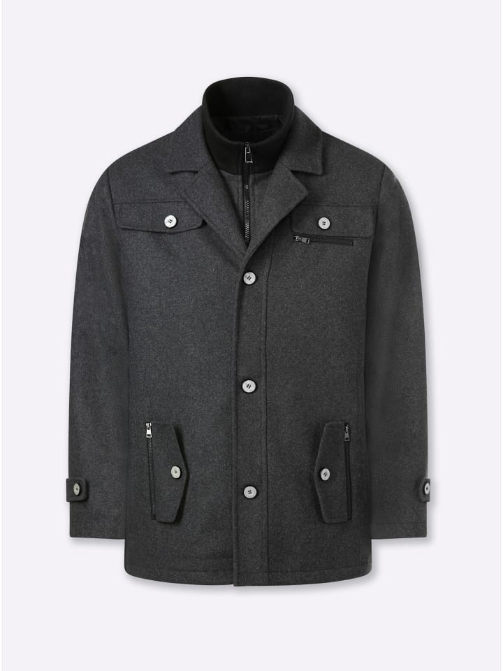 С Marco Donati мужчины могут кутаться: эта уютная длинная куртка на ощупь напоминает шерсть и согревает даже в холодные дни. Куртка имеет съемный ребристый воротник на молнии, лацканы с заостренными краями и потайную молнию с планкой на пуговицах. Боковые карманы на молнии с декоративными клапанами и пуговицами дополняют образ. Три практичных внутренних кармана, два декоративных клапана на пуговицах на уровне груди и один декоративный нагрудный карман с имитацией молнии. Кокетка и строгие швы обеспечивают идеальную посадку.