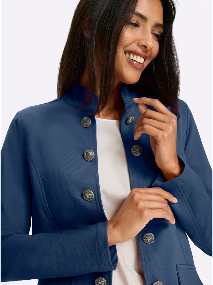 Станьте законодателем моды с этой стильной курткой-рубашкой в стиле милитари! Отличительная черта: воротник-стойка, эффектные пуговицы на двойной декоративной планке и имитация карманов. Закругленный подол спереди и сзади. Изготовлена из прочной, сохраняющей форму ткани, напоминающей толстовку.
