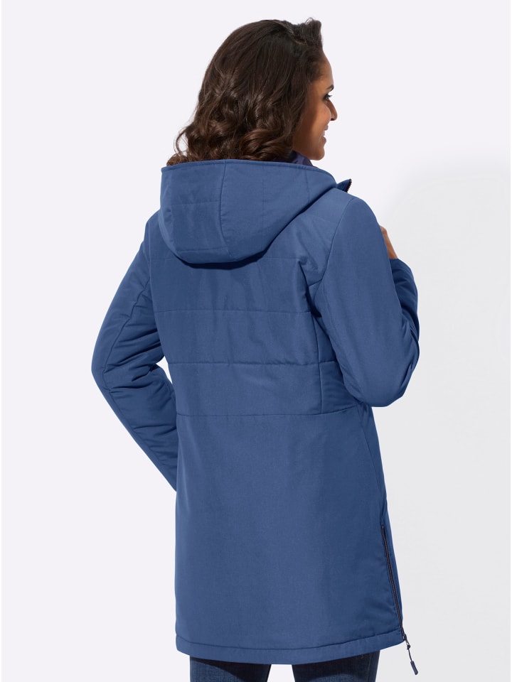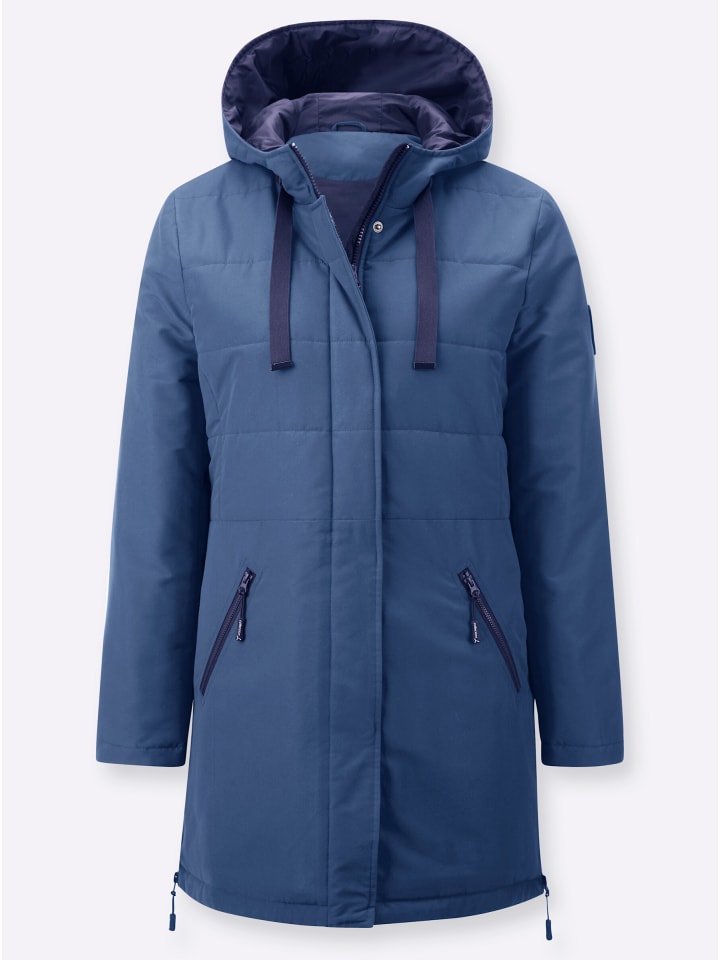 Прочная микрофибра с переработанным полиэстером делает эту теплую удлиненную куртку с привлекательным стеганым дизайном фаворитом! Длинные рукава и область от талии до подола отделаны гладко. Капюшон с кулиской и завязкой имеет подкладку контрастного цвета. Длинная молния скрыта под планкой на кнопках, два косых кармана на молнии и внутренний карман. Приятная деталь: две короткие молнии по бокам подола.