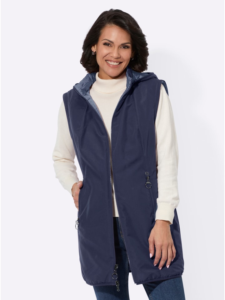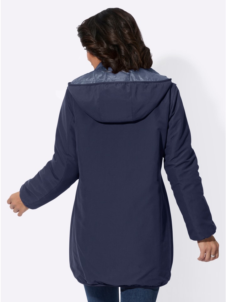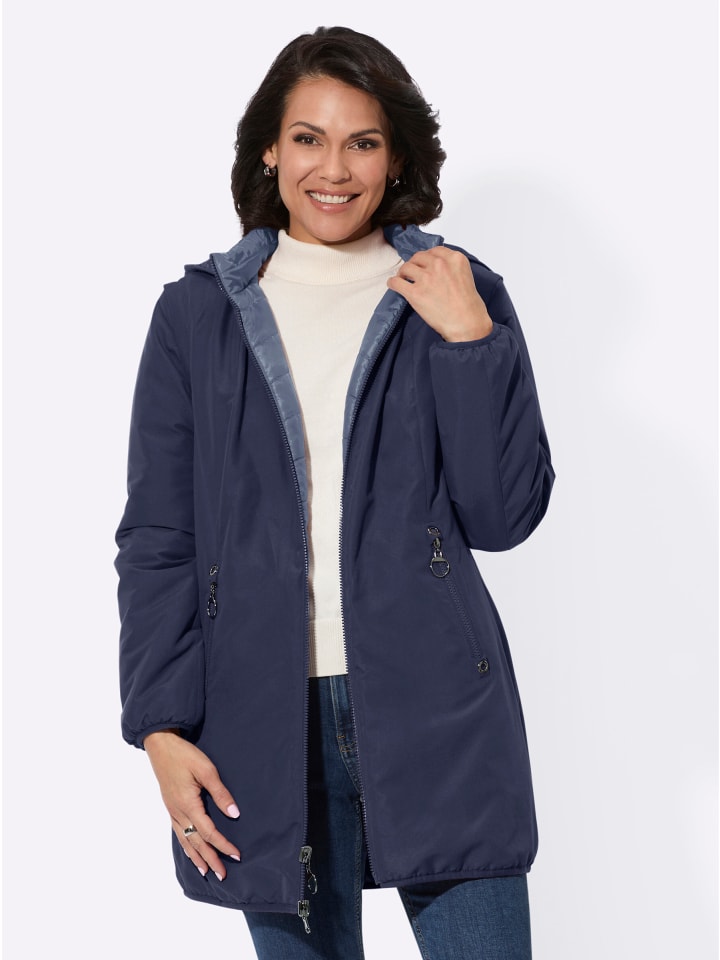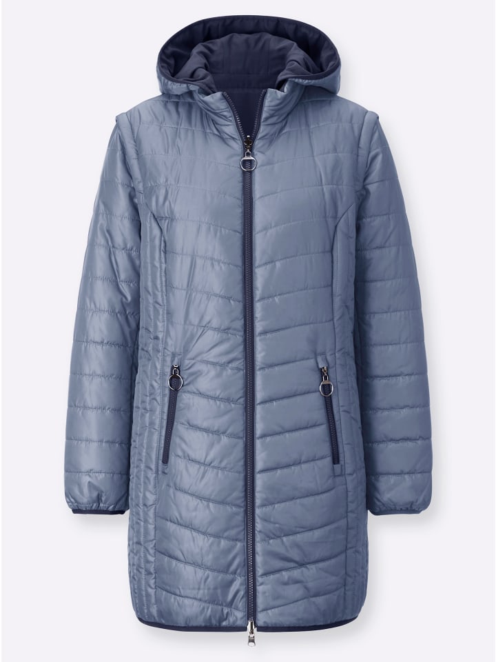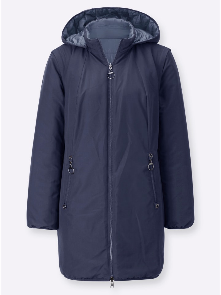 Повседневная универсальная куртка с двусторонним дизайном и отстегивающимися рукавами: 1 длинная куртка - 4 способа носить, создавая каждый раз новый образ! Воротник-стойка со съемным капюшоном. Практичная двухсторонняя молния. Косые карманы на молнии с карманами для предотвращения зацепления. Щипцы для идеальной посадки.