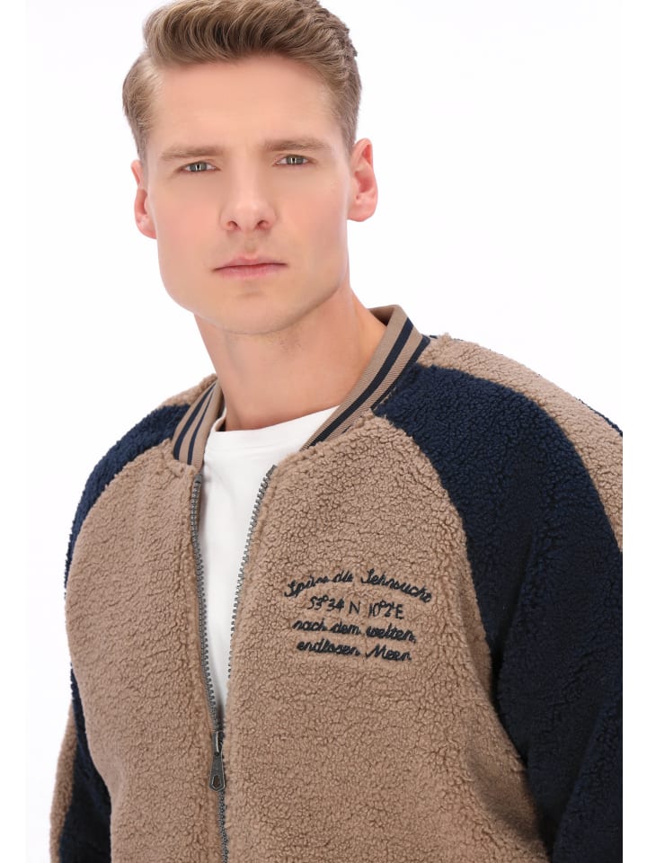 Куртка в стиле колледжа из коллекции DreiMaster Vintage - это стильный реверанс классическому стилю со спортивным оттенком. Эта куртка свободного кроя выполнена из мягкой ткани «тедди» для исключительного комфорта и тепла. Рукава реглан, ребристый воротник, ребристые манжеты и подол подчеркивают характерный стиль колледжа. Застежка-молния, практичные карманы и изящная вышивка придают куртке уникальный характер. Контрастные цветные вставки добавляют современный штрих, создавая идеальное сочетание непринужденного комфорта и классического дизайна.
