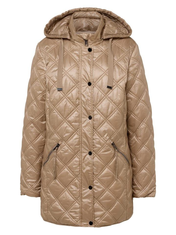 - Стеганая куртка с капюшоном с современным ромбовидным узором.