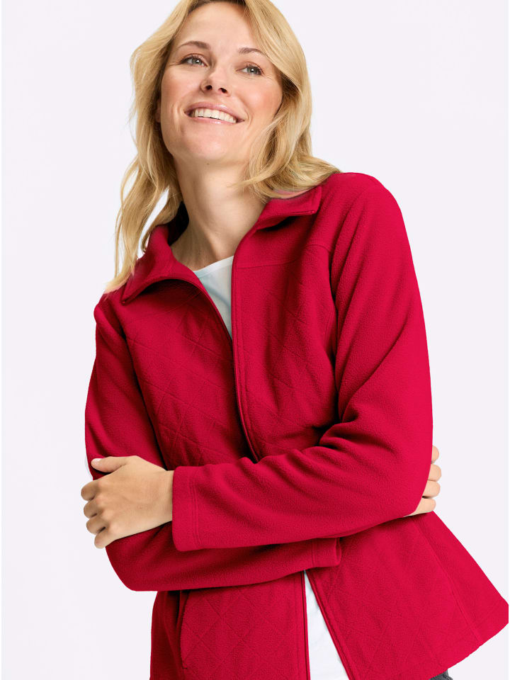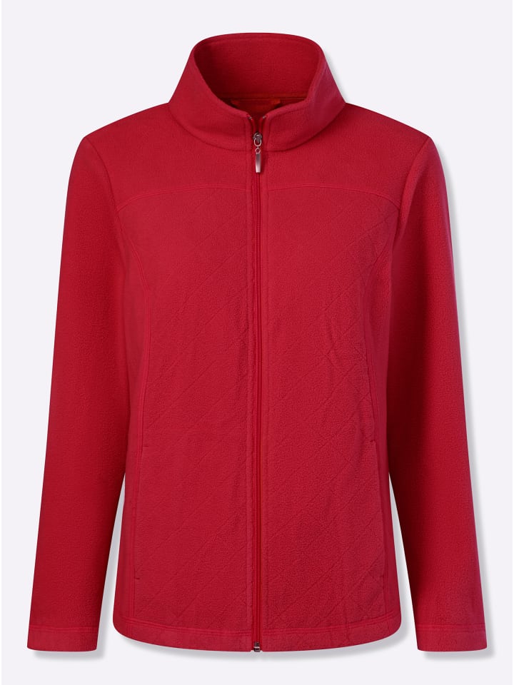 Уютная и мягкая, идеально подходит для прохладных дней: флисовая куртка с ромбовидным узором. Формирующие швы спереди и сзади. Дополнительные детали: защитный воротник-стойка, молния по всей длине и два кармана в швах.