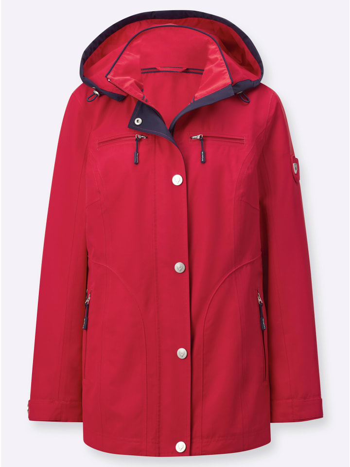Плохая погода? Ну и что, мы все равно выйдем! Эта куртка с технологией Tex-Venture защитит нас от дождя и ветра! Капюшон легко и быстро отстегивается. Куртка оснащена воротником-стойкой и четырьмя карманами на молнии. Двойная защита обеспечивается застежкой-молнией, скрытой под планкой на кнопках. Талия регулируется шнурком. Ветрозащитные манжеты на рукавах обеспечивают идеальную посадку. Ажурные швы обеспечивают максимальный комфорт. Высококачественная обработка с привлекательными контрастами.