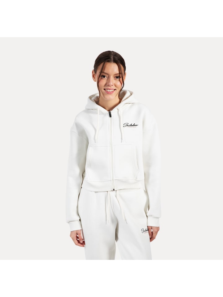 Наша толстовка сочетает в себе спортивный дизайн и функциональные детали. Вышитый логотип на груди добавляет изящный акцент, а длинная молния спереди позволяет легко надевать и снимать толстовку. Карман-кенгуру обеспечивает практичное место для хранения вещей, а манжеты на рукавах и подоле обеспечивают надежную посадку. Высококачественная мягкая ткань гарантирует комфортную повседневную носку.