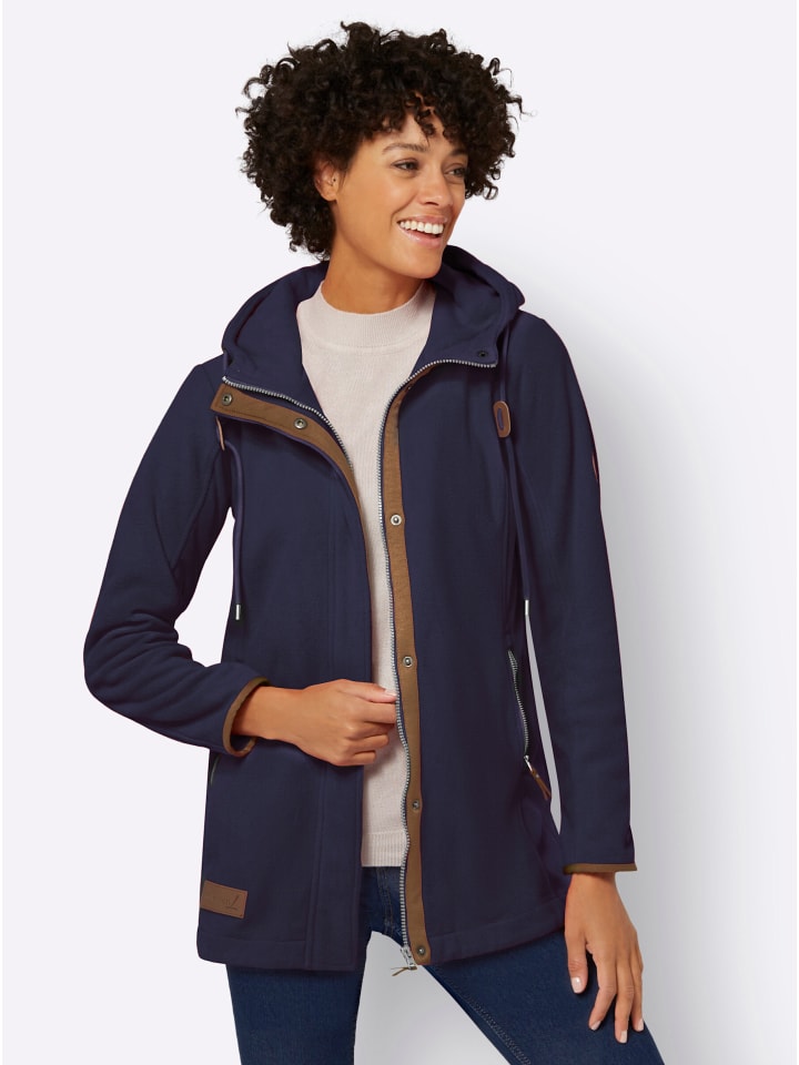 Спортивный стиль: модная удлиненная модель и контрастная окантовка. Теплая флисовая куртка из переработанного полиэстера. Детали: капюшон на шнурке, потайная молния с контрастной планкой на кнопках внутри, практичные карманы на молнии и длинные рукава. Формирующие швы обеспечивают отличную посадку.