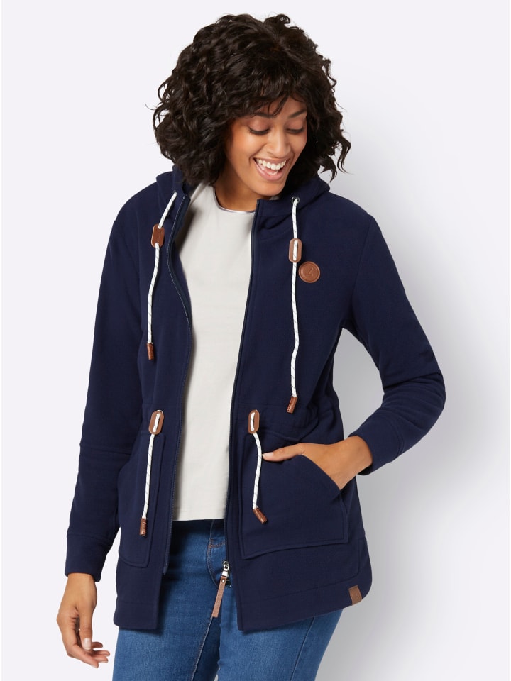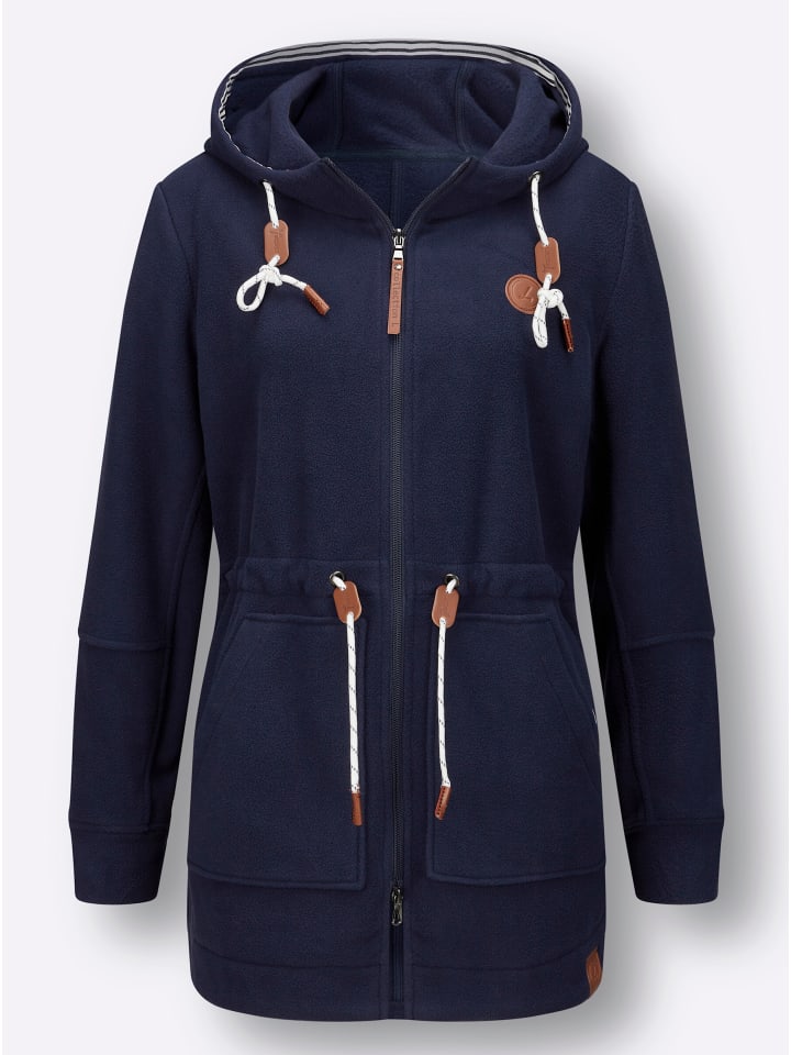 Современная, визуально удлиняющая модель: невероятно мягкая флисовая куртка с отделкой против катышков, предотвращающей скатывание, и капюшоном на шнурке и завязке. Изюминкой являются двусторонняя молния, два накладных кармана, вставки из искусственной кожи, длинные рукава с манжетами и закругленный подол с боковыми разрезами. Кулиска на талии позволяет регулировать посадку.