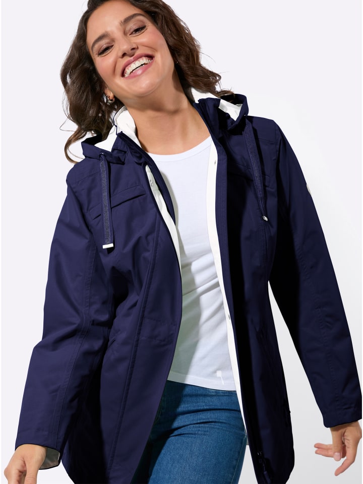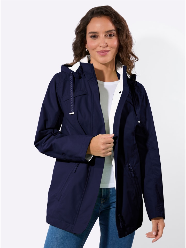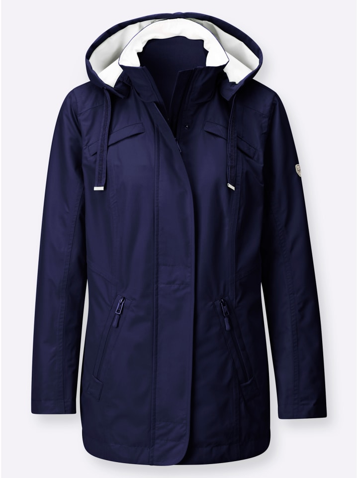 Идеально подходит для межсезонья! Куртка с защитным воротником-стойкой и регулируемым капюшоном, который можно отстегнуть при необходимости. Молния во всю длину скрыта планкой на кнопках. Особенности: два нагрудных кармана, два кармана на молнии и один практичный внутренний карман. Полосатая резинка на поясе сзади. Аккуратные швы обеспечивают идеальную посадку.