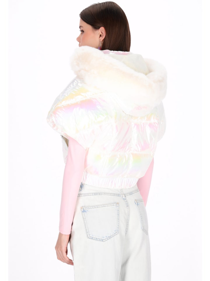 Эта стильная стеганая куртка из коллекции MyMo - идеальный выбор для ценителей современного стиля и комфорта. Изготовленная из высококачественного полиэстера с голографическим эффектом, она привлекает внимание своим неповторимым блеском и молодежным характером. Свободный крой и укороченная длина обеспечивают свободу движений и создают модный образ. Короткие рукава, капюшон и воротник-стойка защищают от холода, а застежка на молнию и практичные карманы добавляют функциональности. Отделка из искусственного меха и стеганый дизайн создают уникальный стиль, сочетающий комфорт с последними молодежными модными тенденциями.