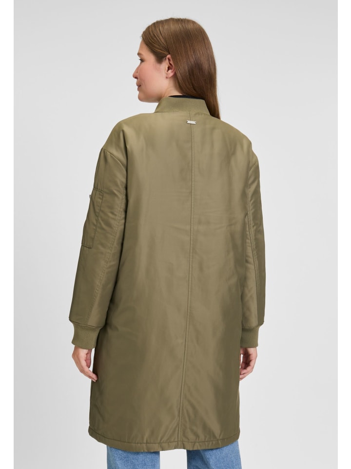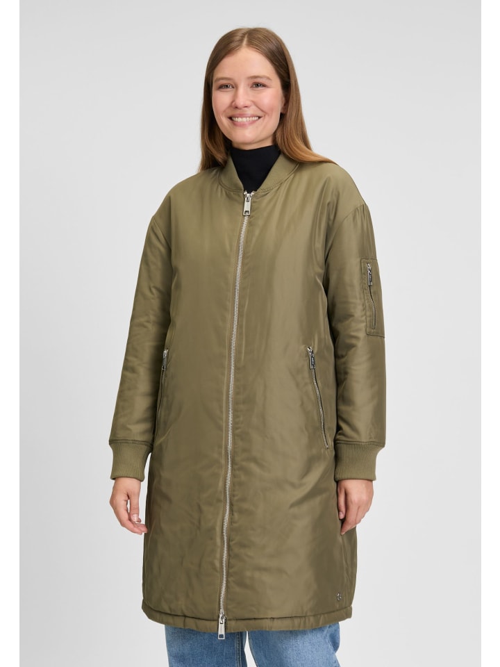 Длинная женская куртка-бомбер COVERED - идеальный повседневный спутник для холодного времени года. Мягкий трикотажный воротник-стойка и манжеты из ребристого трикотажа. Двусторонняя молния. Внутренний ветрозащитный клапан согреет даже в ветреную погоду. Много места для хранения: два больших внешних кармана на молнии, карман на рукаве на молнии и внутренний карман для рук на липучке. Стильная аппликация на подоле и под воротником сзади. Эта куртка простегана переработанным материалом Unifi REPREVE для комфорта даже в несезонное время года. Доступная в различных размерах, наша длинная женская куртка-бомбер идеально подходит для любых ситуаций благодаря водоотталкивающей пропитке - даже в небольшой дождь.