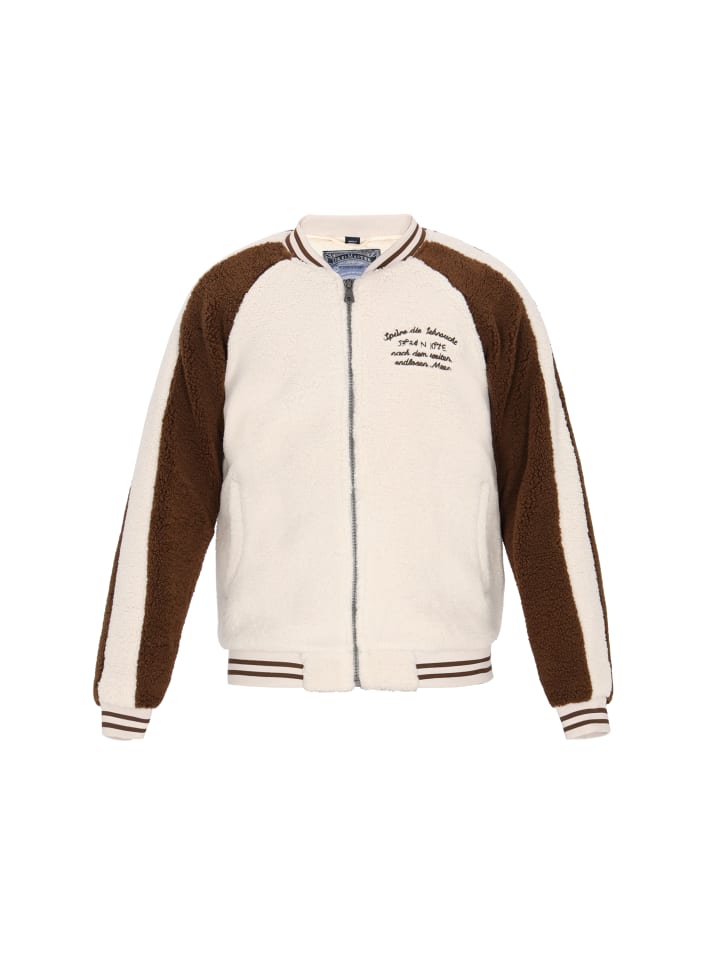 Куртка в стиле колледжа из коллекции DreiMaster Vintage - это стильный реверанс классическому стилю со спортивным оттенком. Эта куртка свободного кроя выполнена из мягкой ткани «тедди» для исключительного комфорта и тепла. Рукава реглан, ребристый воротник, ребристые манжеты и подол подчеркивают характерный стиль колледжа. Застежка-молния, практичные карманы и изящная вышивка придают куртке уникальный характер. Контрастные цветные вставки добавляют современный штрих, создавая идеальное сочетание непринужденного комфорта и классического дизайна.