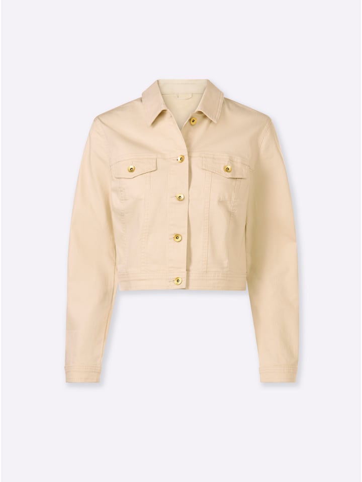 Джинсовая куртка спортивного, короткого фасона с отложным воротником, застежкой на пуговицы по всей длине и нагрудными карманами. Длинные рукава с пуговицами и разрезом. Поддерживает инициативу «Сделано в Африке» (Catton made in Africa).