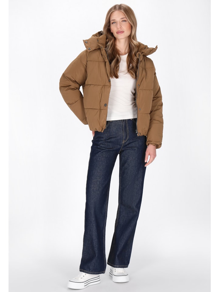 - стеганая куртка прямого кроя с капюшоном и длинными рукавами