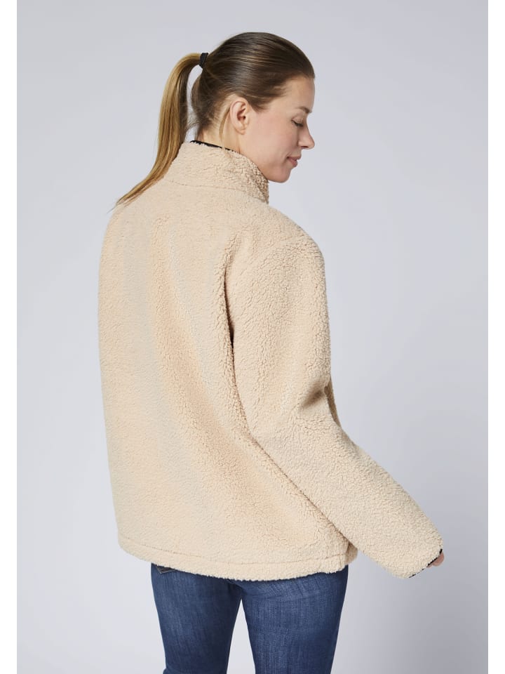 Эта женская флисовая куртка удобного кроя от CHIEMSEE идеально сочетает в себе тепло, стиль и функциональность - идеально подходит для холодных осенних и зимних дней в городе, в горах или после занятий сноубордом. Мягкий материал с имитацией овчины не только обеспечивает приятное тепло, но и гарантирует исключительный комфорт. Высокий воротник-стойка надежно защищает от ветра, а эластичные манжеты и подол обеспечивают удобную посадку. Стильные контрастные детали, включая накладной карман на молнии на груди и эффектную окантовку, придают куртке спортивно-современный вид. Практичная для повседневного использования: боковые карманы позволяют носить руки или мелкие предметы - функционально и стильно одновременно. Эту флисовую куртку от CHIEMSEE можно носить как средний слой под курткой или отдельно, она станет настоящим фаворитом для тех, кто любит тепло и комфорт.