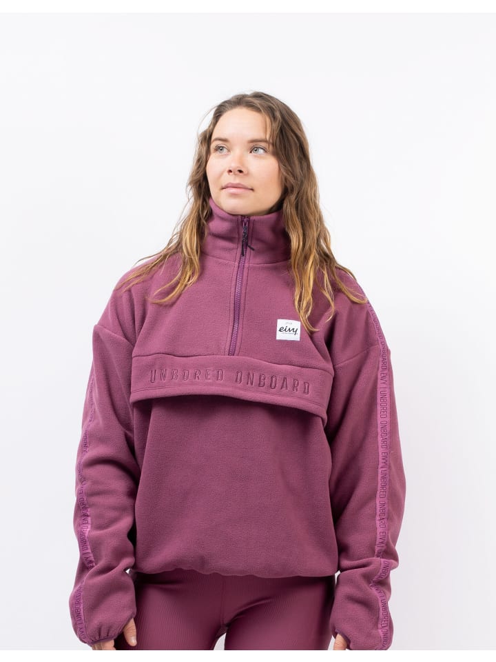Свободный флисовый свитер с высоким воротником на молнии, тканой накладкой на груди и петлями для больших пальцев. Разработано в Оре, Швеция.