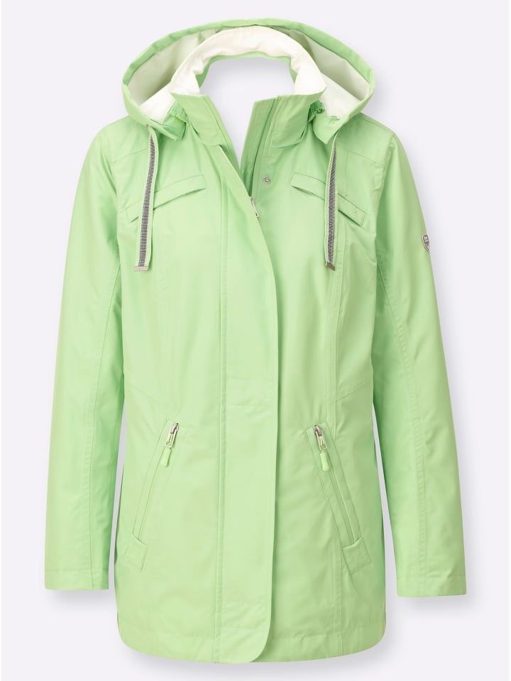 Идеально подходит для межсезонья! Куртка с защитным воротником-стойкой и регулируемым капюшоном, который можно отстегнуть при необходимости. Молния во всю длину скрыта планкой на кнопках. Особенности: два нагрудных кармана, два кармана на молнии и один практичный внутренний карман. Полосатая резинка на поясе сзади. Аккуратные швы обеспечивают идеальную посадку.