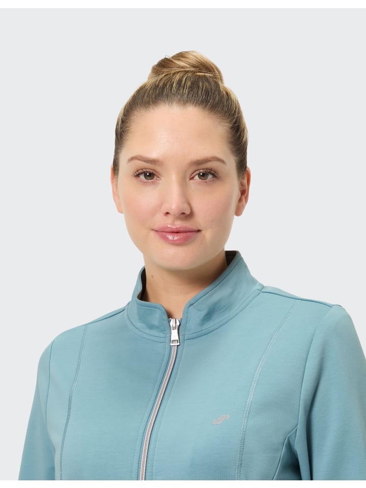 Женская толстовка DORIT: функциональность по-новому Вы ищете повседневную спортивную одежду, которая при этом подчеркивает ваше чувство стиля? Тогда женская толстовка DORIT - это именно то, что вы ищете! Эту модель с длинными рукавами отличают женственные детали, которые подчеркивают вашу фигуру. Изящные швы и декоративные украшения действительно привлекают внимание. Приталенный крой выгодно подчеркивает вашу фигуру. Визуальной изюминкой является спортивный логотип JOY из серебряных заклепок, которые придают куртке легкий блеск. DORIT также впечатляет своими высококачественными свойствами материала. Функциональная смесь хлопка, полиэстера и эластана удобна, но легка для кожи. Эластичная ткань также невероятно эластична, что позволяет вам растягиваться сколько вашей душе угодно во время разминки. Толстовка DORIT также выигрывает в функциональном плане благодаря практичным функциям: - Два боковых кармана предлагают место для небольших ценных вещей, таких как ключи или абонемента на спортзал. - Двусторонняя молния позволяет легко регулировать температуру тела. - Прочный воротник-стойка защищает шею от сквозняков. Все это делает куртку DORIT прочной и комфортной, которая согреет вас в любую погоду. Выберите понравившуюся куртку на молнии из нашей коллекции цветов и размеров и закажите у нас.