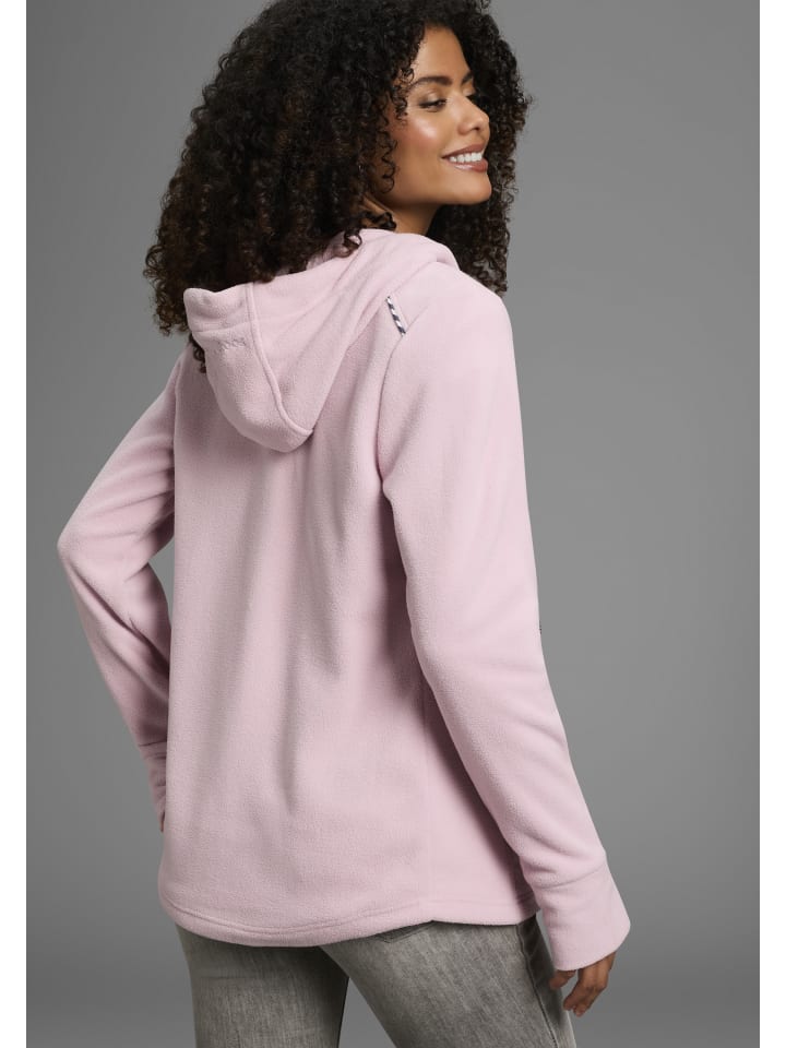 Женская флисовая куртка KangaROOS обеспечит уютное тепло. Куртка длиной до бедер удобна, застегивается на молнию и оснащена капюшоном на шнурке. Карманы на молнии надежно защитят ценные вещи от выпадения. Дополняет образ бейдж. Флисовая куртка отлично защищает от холода и очень удобна в носке. Она станет отличным спутником для прогулок по лесу или спонтанных встреч с друзьями.