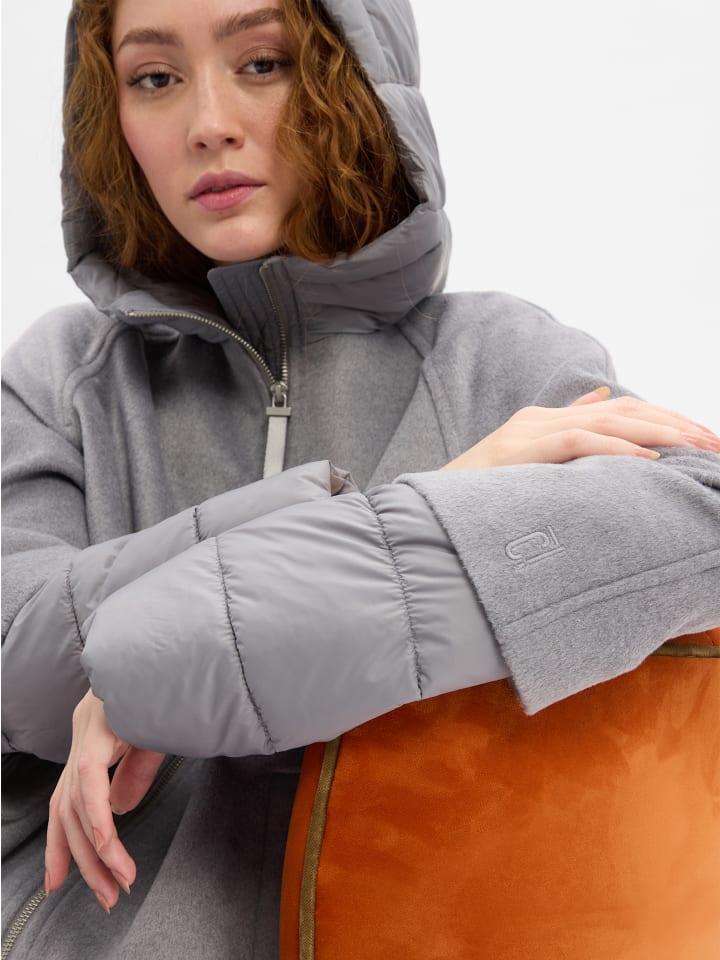 Эта переходная куртка от Comma впечатляет своим современным минималистичным дизайном и мягкостью благодаря роскошной смеси шерсти и синтетики, а многослойные рукава со стегаными вставками добавляют современный и стильный штрих.
