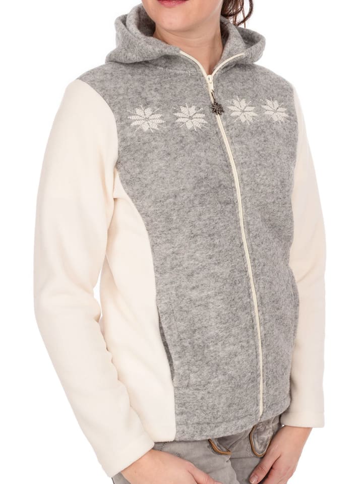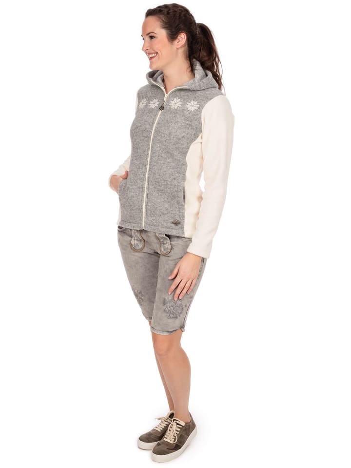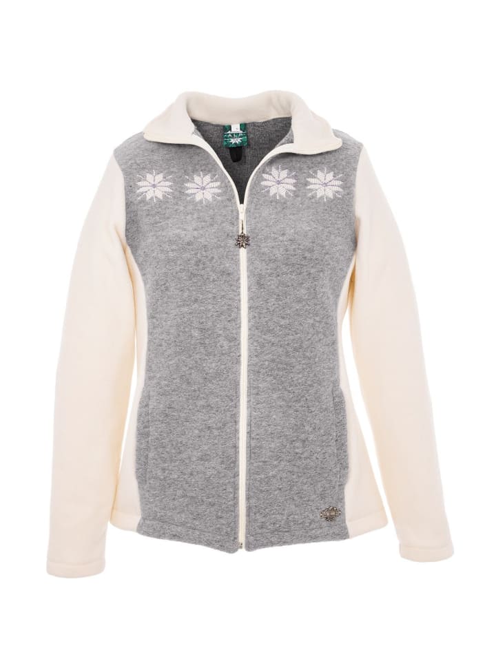 Женская куртка 423301 от ALP 1964 в серо-кремовой расцветке - прекрасный традиционный предмет одежды, воплощающий элегантность традиционной одежды. Изысканный серо-кремовый дизайн придает куртке вневременной вид, а вышитые цветы эдельвейса на груди добавляют очаровательный традиционный акцент.