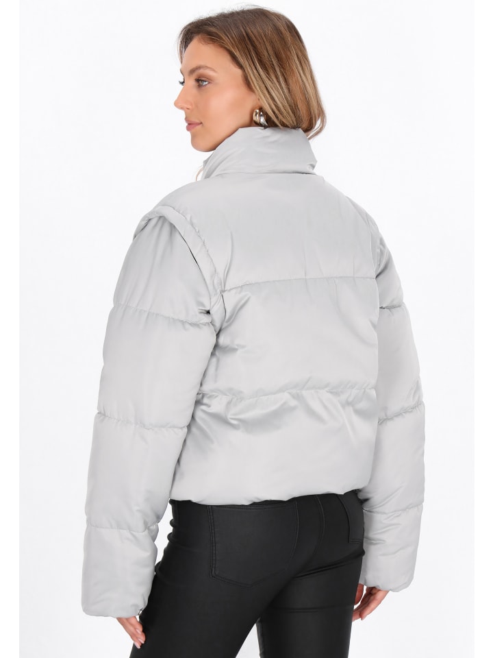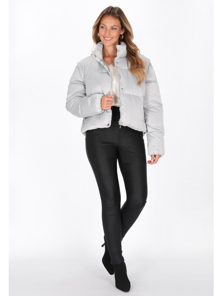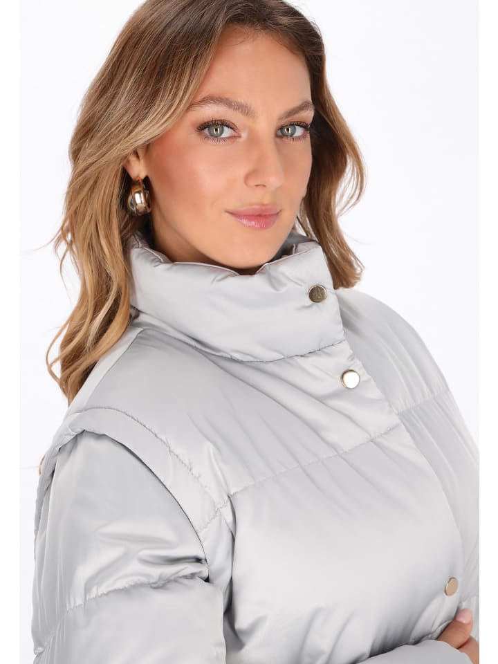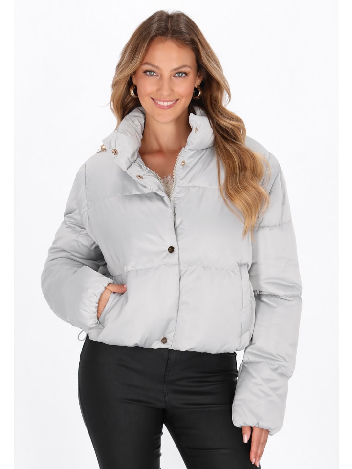 - Куртка прямого кроя с воротником-стойкой и длинными рукавами