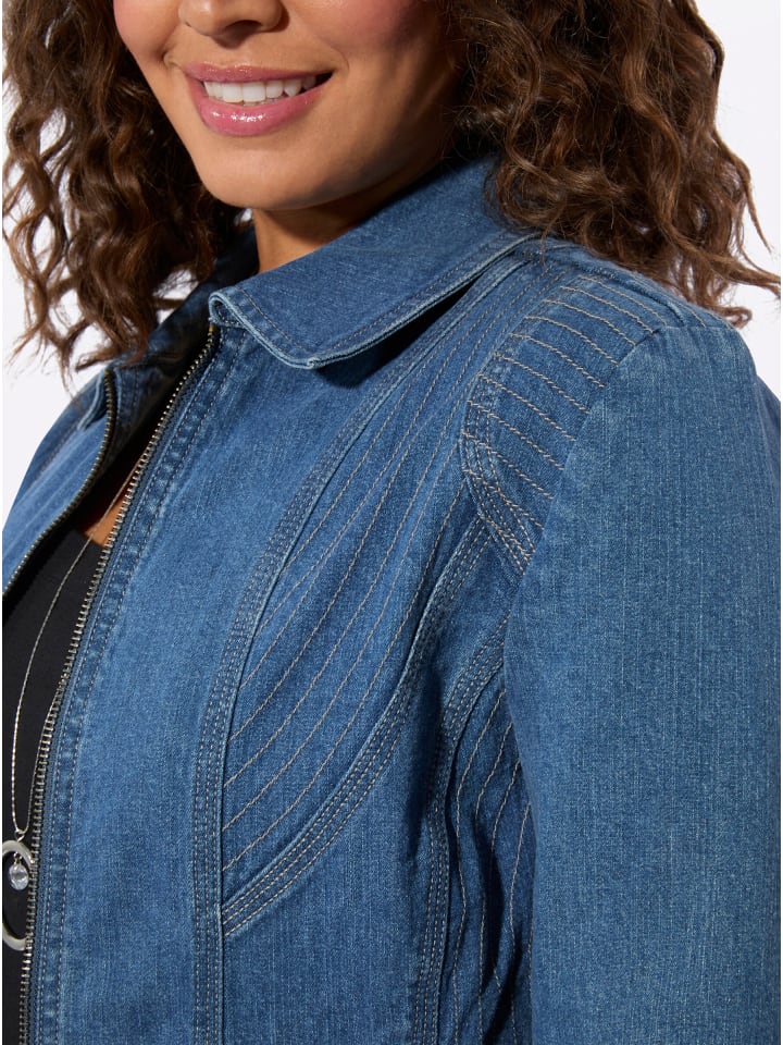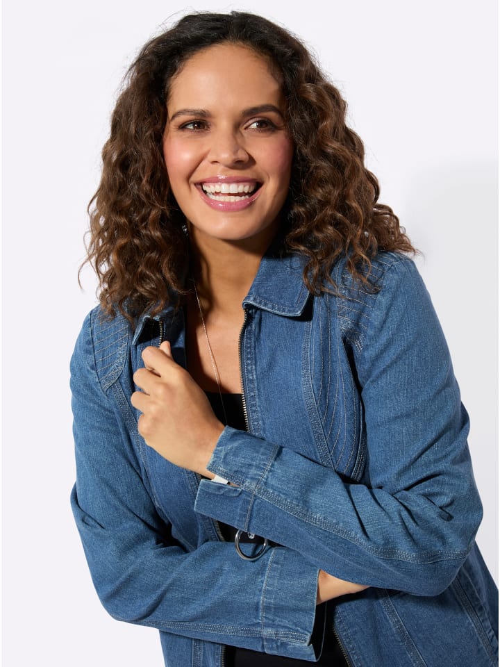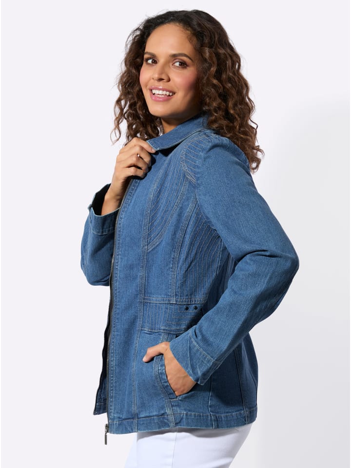 Эта повседневная джинсовая куртка - незаменимый предмет гардероба! Контрастные декоративные швы, фактурные швы и разделительные строчки спереди и сзади делают ее по-настоящему привлекательной и обеспечивают идеальную посадку. Отложной воротник, молния во всю длину и длинные рукава с манжетами и небольшим разрезом. Практичные детали включают два кармана на молнии в швах. Куртка соответствует инициативе «Сделано в Африке» (Cat. Made in Africa).