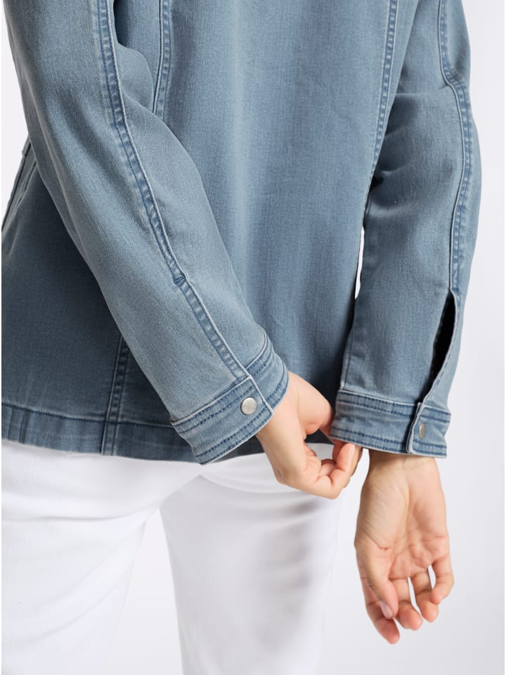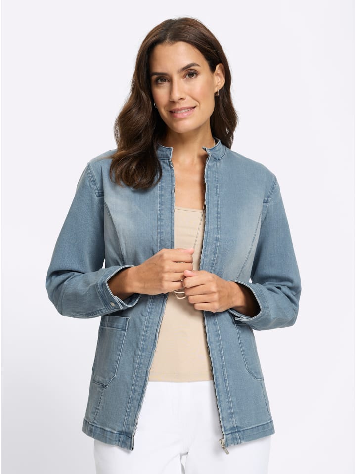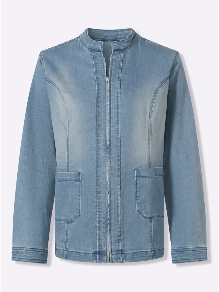 Джинсовая куртка - повседневная классика теперь представлена в модном и универсальном варианте. Круглый вырез горловины, практичная застежка-молния и два накладных кармана. Длинные рукава с манжетами на пуговицах. Формирующие швы и кокетка сзади обеспечивают оптимальную посадку. Легкая стирка завершает образ. Приятная мягкая эластичная ткань. Поддерживает инициативу «Сделано в Африке» (Catton made in Africa).