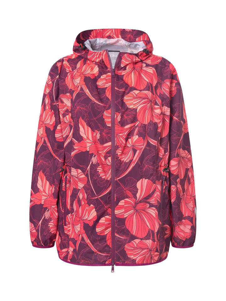 Дождевик с ярким рисунком орхидей и тройной функциональностью: водонепроницаемый (5000 мм водяного столба), ветронепроницаемый и дышащий. Регулируемый капюшон с козырьком, водонепроницаемая двухсторонняя молния и два кармана на молнии. Талия затягивается шнурком для идеальной посадки. Длинные рукава с эластичными манжетами и подолом. Стильный светоотражающий принт на левом рукаве. Компактно складывается в практичный набедренный карман.