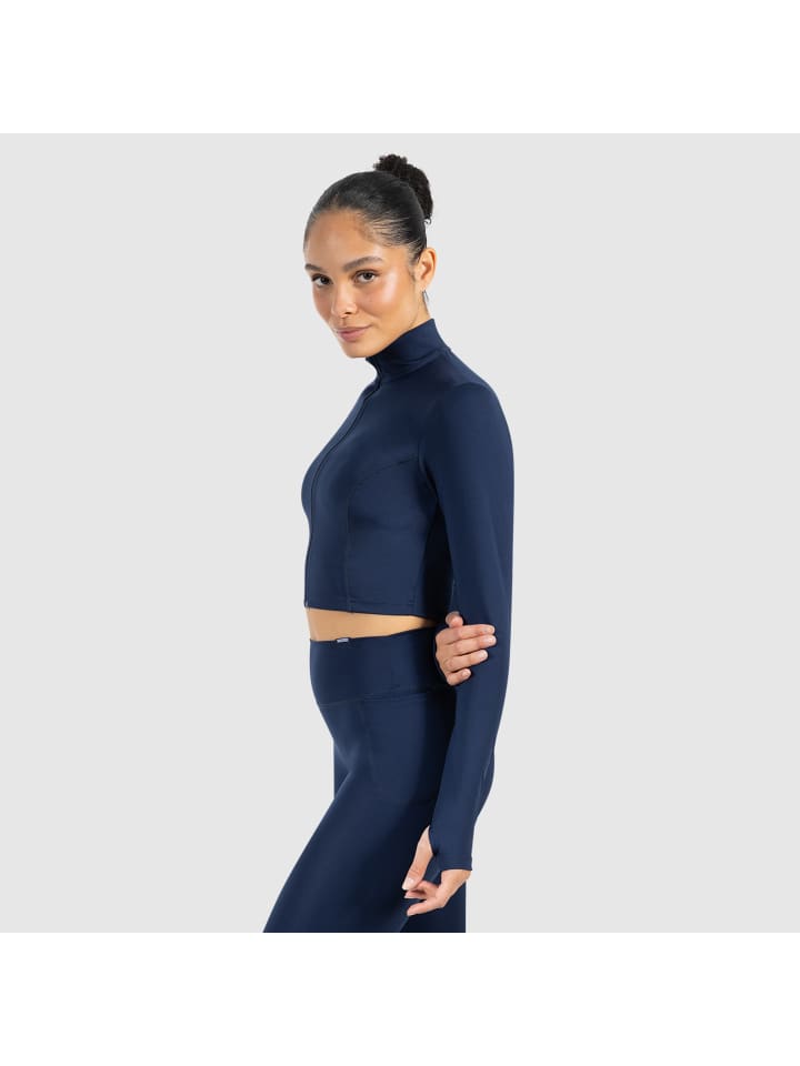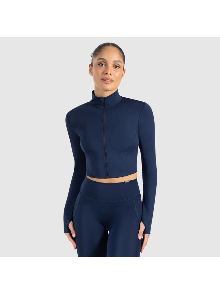 Наша женская укороченная куртка сочетает в себе спортивный крой и функциональный дизайн. Короткий облегающий крой подчеркивает фигуру, а воротник-стойка и молния во всю длину обеспечивают четкий вид. Отверстия для больших пальцев на рукавах обеспечивают дополнительную поддержку. Эта куртка идеально подходит как для тренировок, так и для повседневного ношения.
