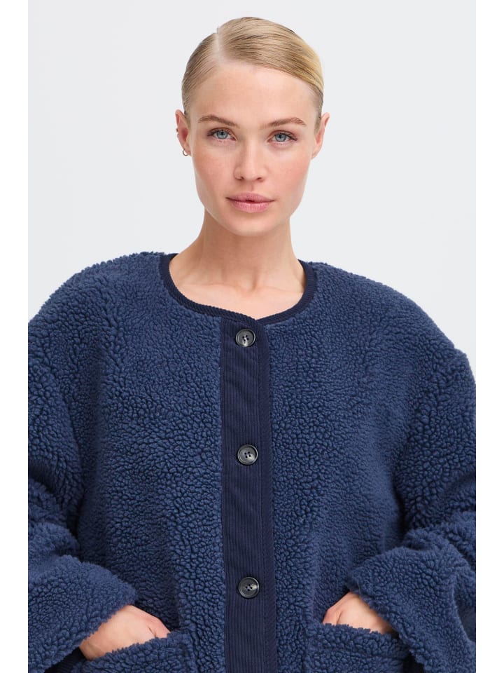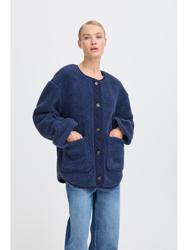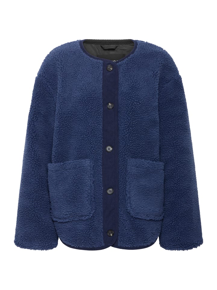 Эта женская куртка сочетает в себе свободный крой с текстурированной поверхностью, круглым вырезом и накладными карманами. Застежка на пуговицы обеспечивает комфорт на каждый день.