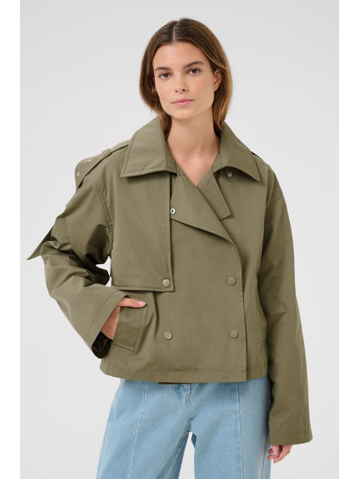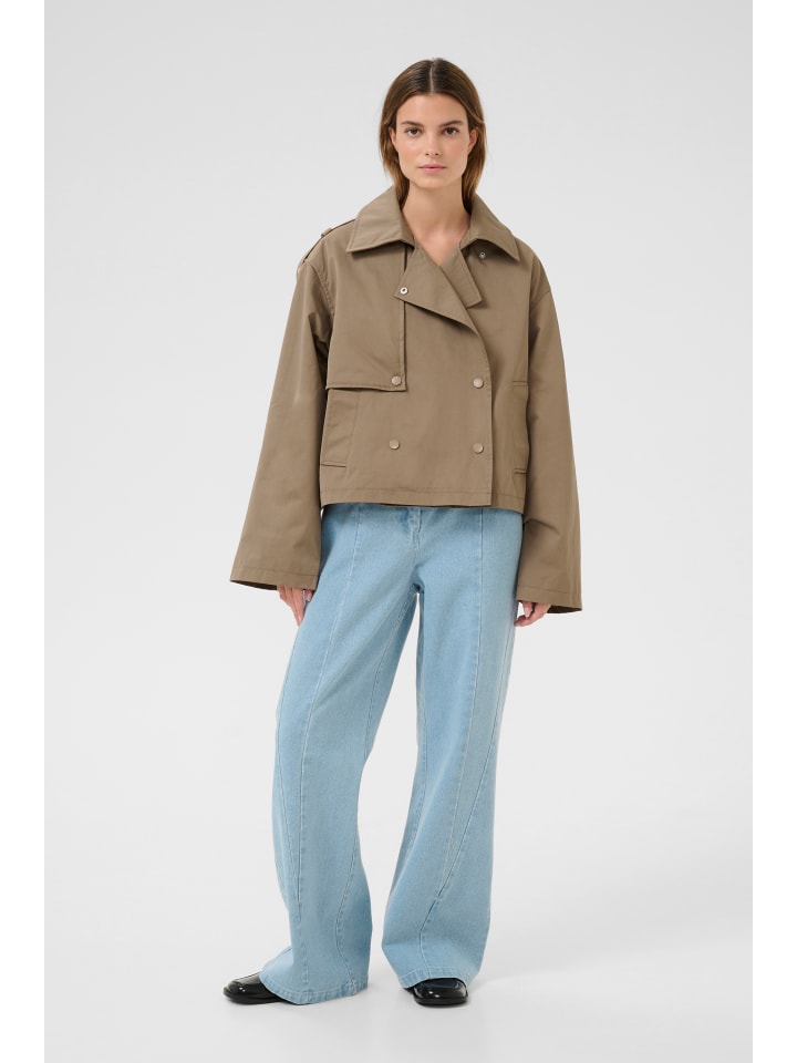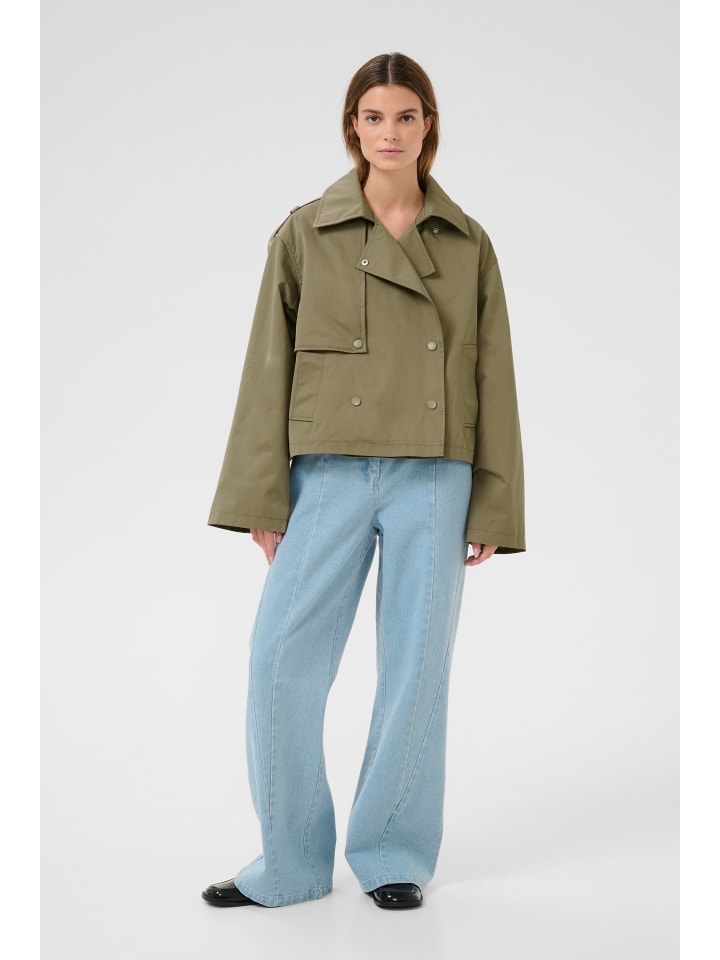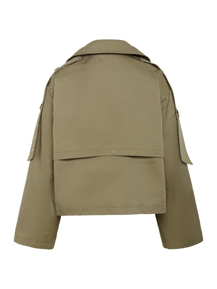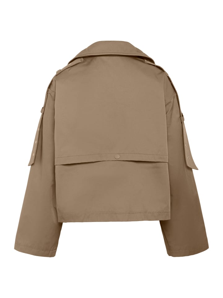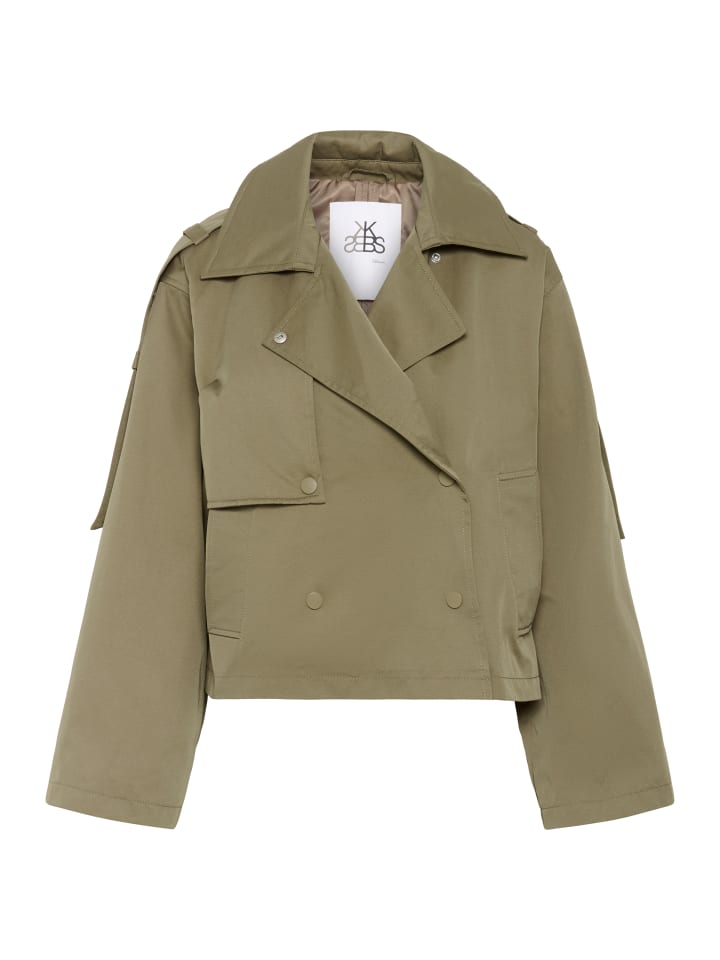 Эта короткая куртка впечатляет своим современным, лаконичным силуэтом, двубортным передом, эффектным воротником и широкими рукавами. Матовые пуговицы добавляют стильный штрих.