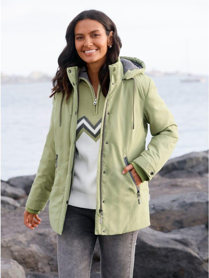Сочетание качества, комфорта и стиля: невероятно теплая куртка Sympatex для морозных дней! Эта высококачественная куртка ветро- и водонепроницаема, при этом прекрасно дышит. Куртка имеет воротник-стойку, съемный капюшон со шнурком и завязкой, длинную молнию, скрытую планкой на кнопках с практичной защитой подбородка, два удобных кармана на молнии и один внутренний карман на кнопке. Длинные рукава с эластичными манжетами регулируются по ширине благодаря хлястикам и кнопкам. Формирующие швы создают привлекательный силуэт.
