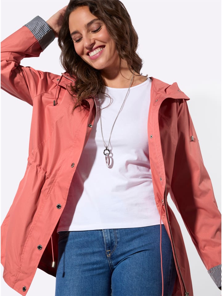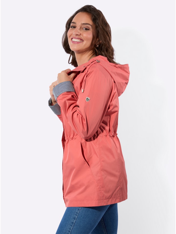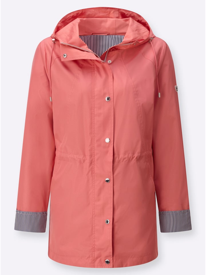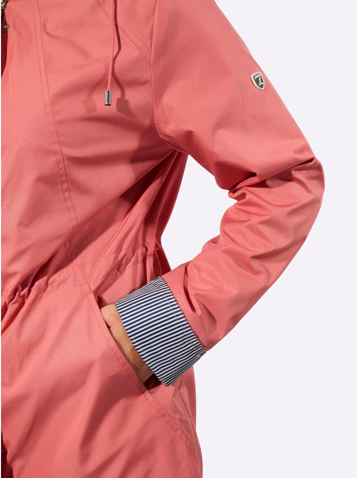 В межсезонье мы любим надевать эту матово-мерцающую куртку из переработанного полиэстера с ненавязчивым минималистичным узором. Привлекает внимание полосатый рисунок на фиксированных манжетах длинных рукавов. Куртка имеет капюшон на шнурке и молнию, скрытую под планкой на кнопках. Два кармана и один внутренний карман. Кулиска на талии позволяет регулировать размер.