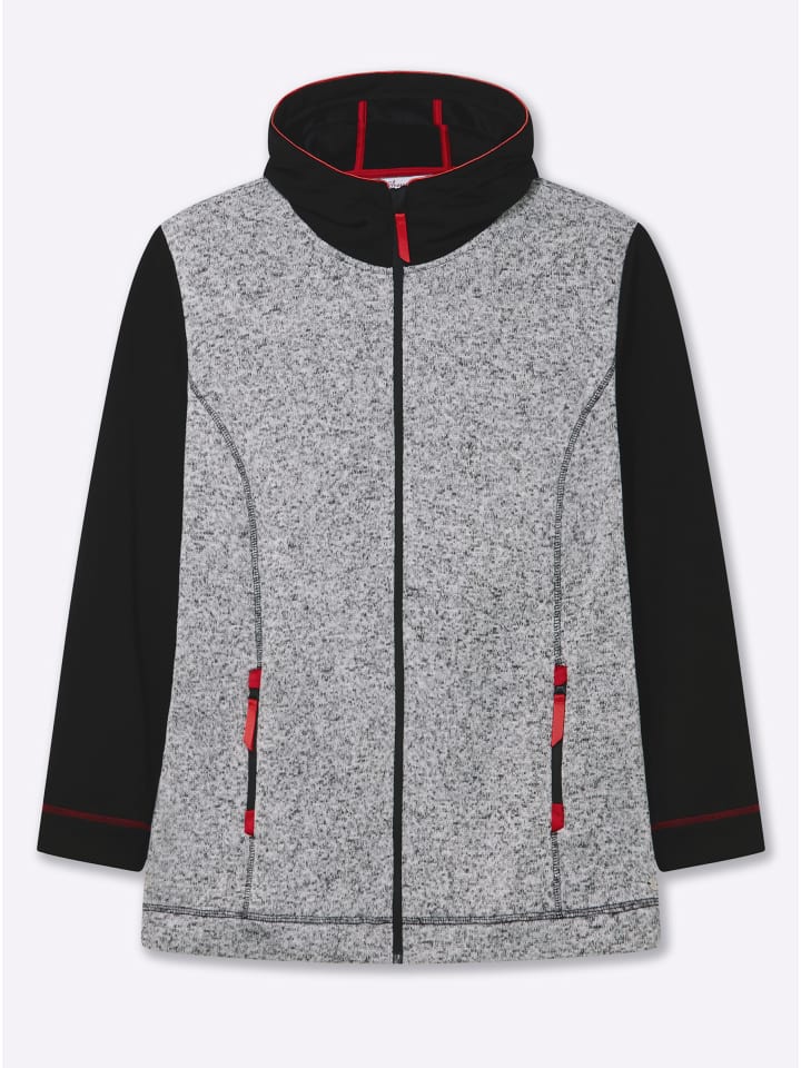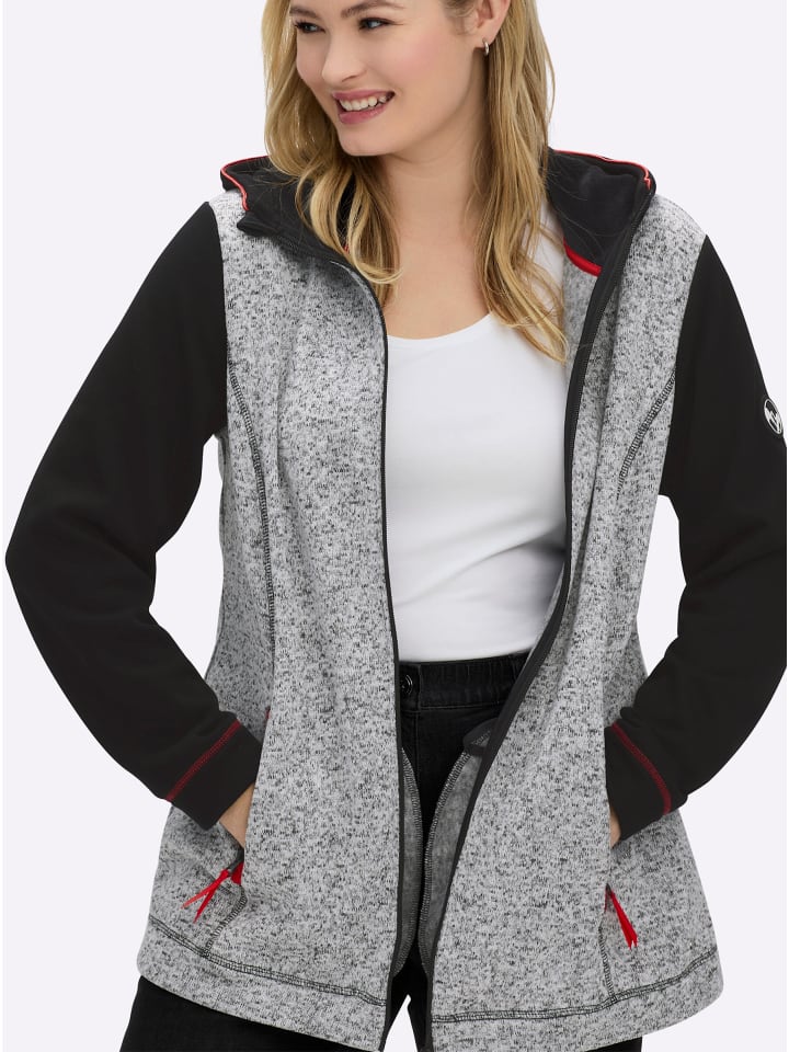 Флисовая куртка с капюшоном в черно-бежевом меланже sheego