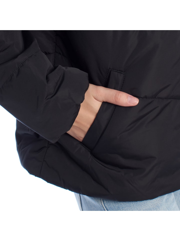 Имеет длинные рукава с внутренними манжетами, удобную молнию по центру спереди, два прорезных боковых кармана и дополнительный высокий воротник. Культовый логотип бренда вышит на груди этой женской стеганой куртки.