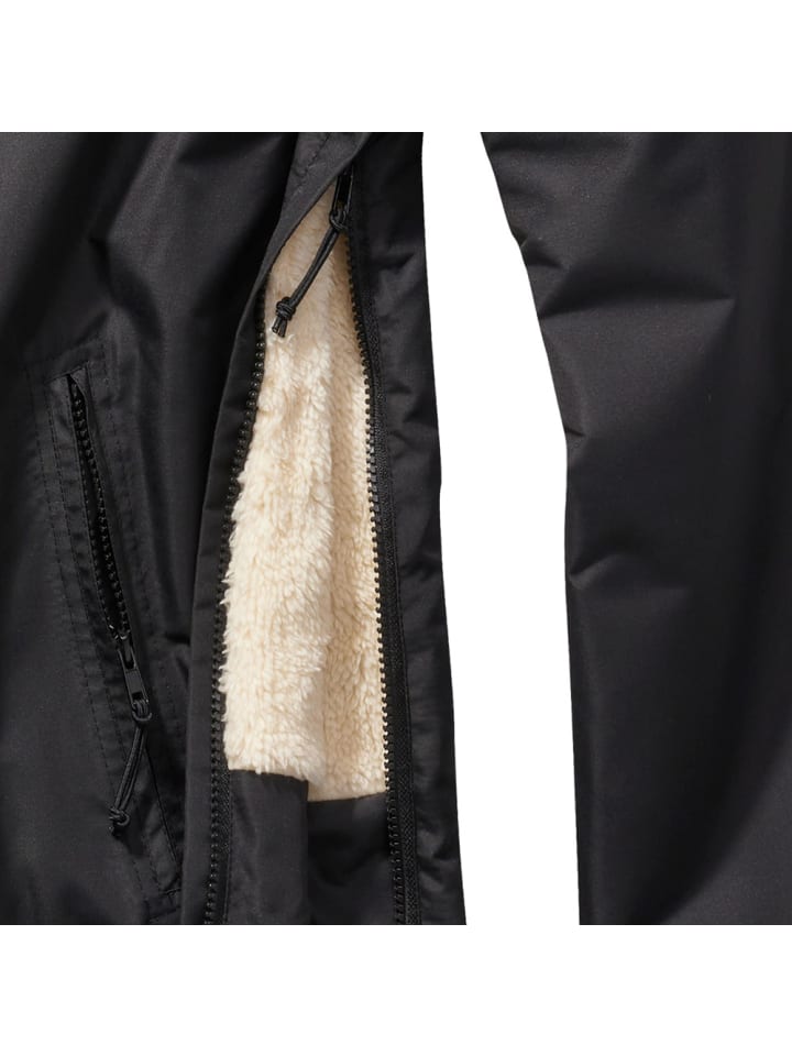 Теплая флисовая подкладка / ветро- и водоотталкивающий внешний материал / капюшон на подкладке со шнурком и фиксатором шнура / защита подбородка и ветрозащитный клапан на молнии воротника / высококачественная боковая молния для удобства одевания и раздевания / пояс со шнурком и фиксатором шнура / регулируемые манжеты на липучке / 1 большой нагрудный карман на молнии / 2 боковых кармана на молнии / все молнии с язычками