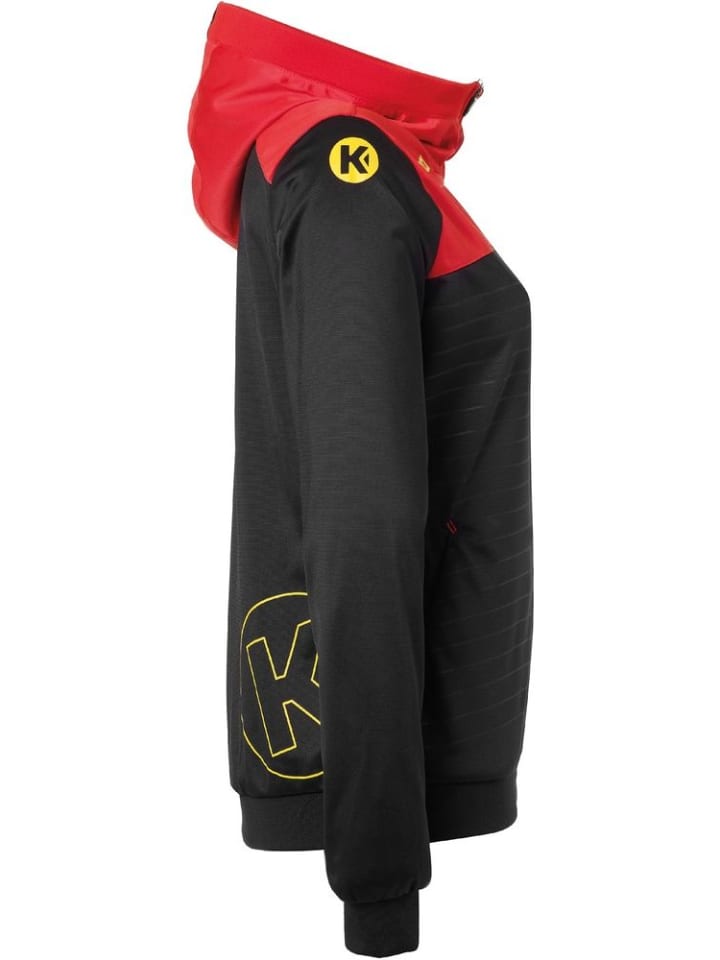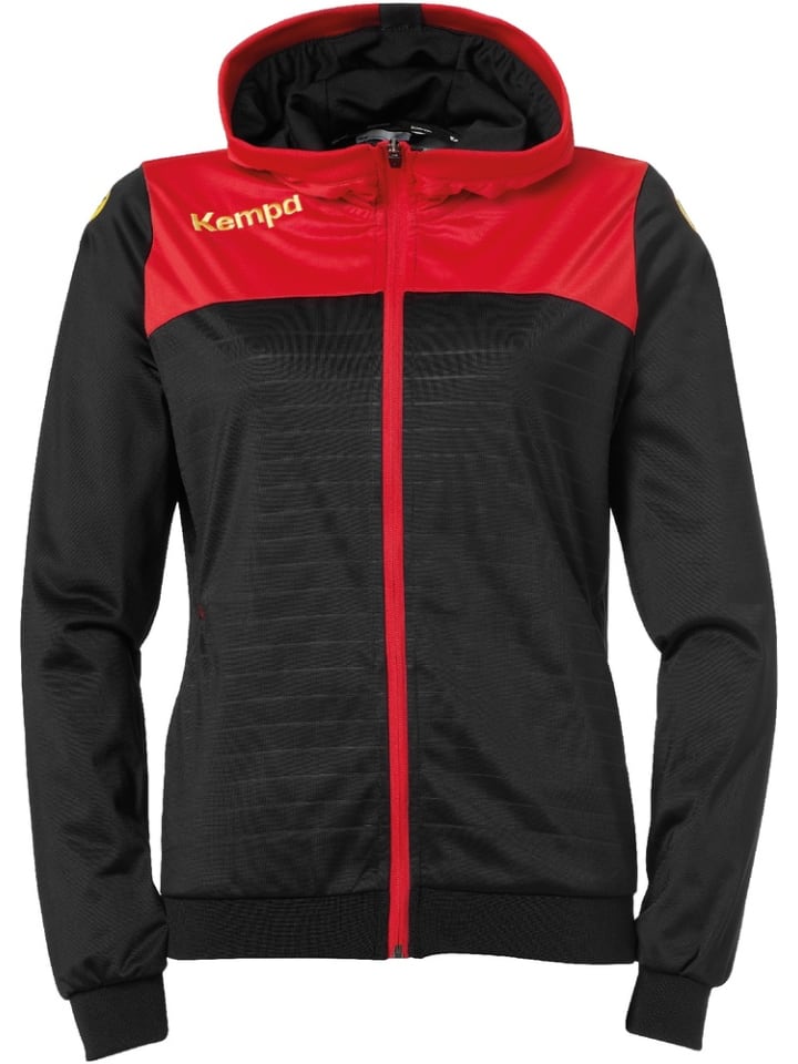 - Женский крой- Технический дизайн спереди и сзади- Рельефные строчки спереди- Боковые карманы на молнии- Ребристый капюшон- Эластичные ребристые манжеты и нижний край- Вышитый логотип Kempa и принты K-Label